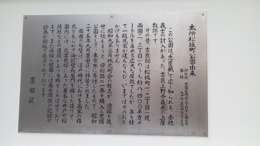忠臣蔵関連の散策の際には「本所松坂町公園」~両国~