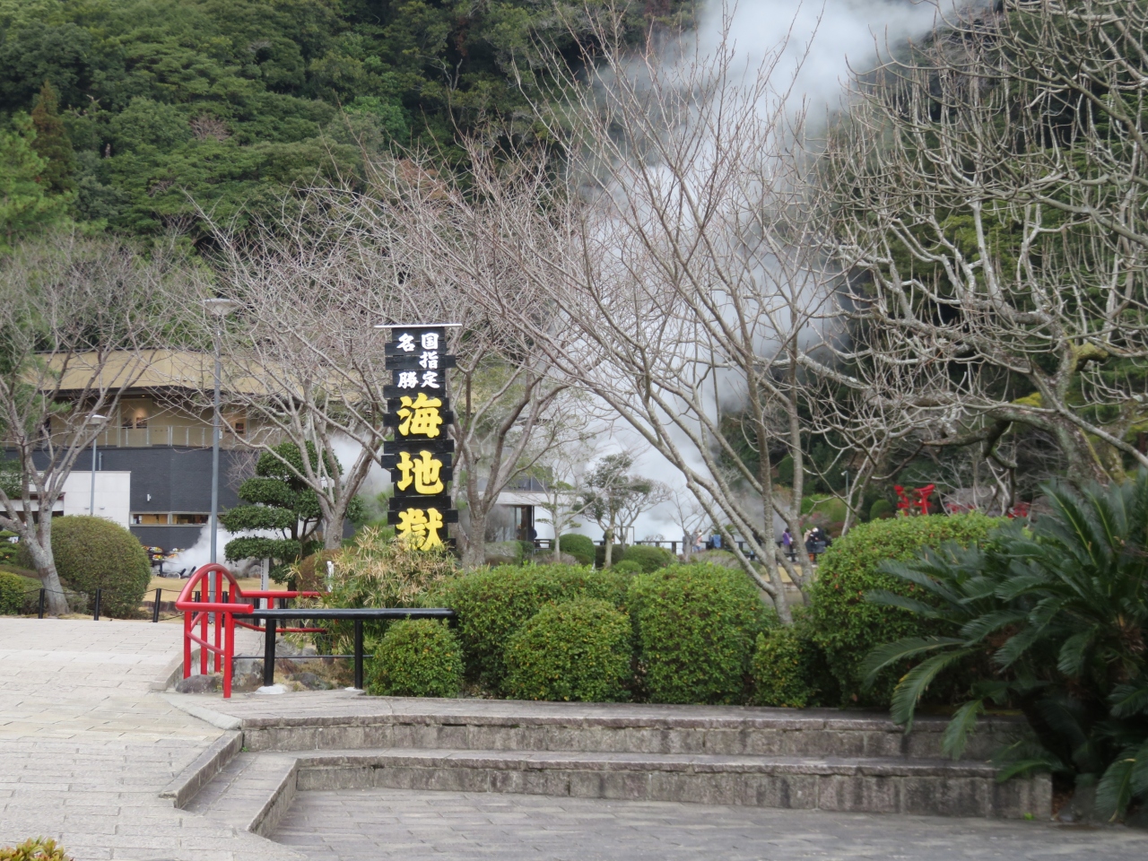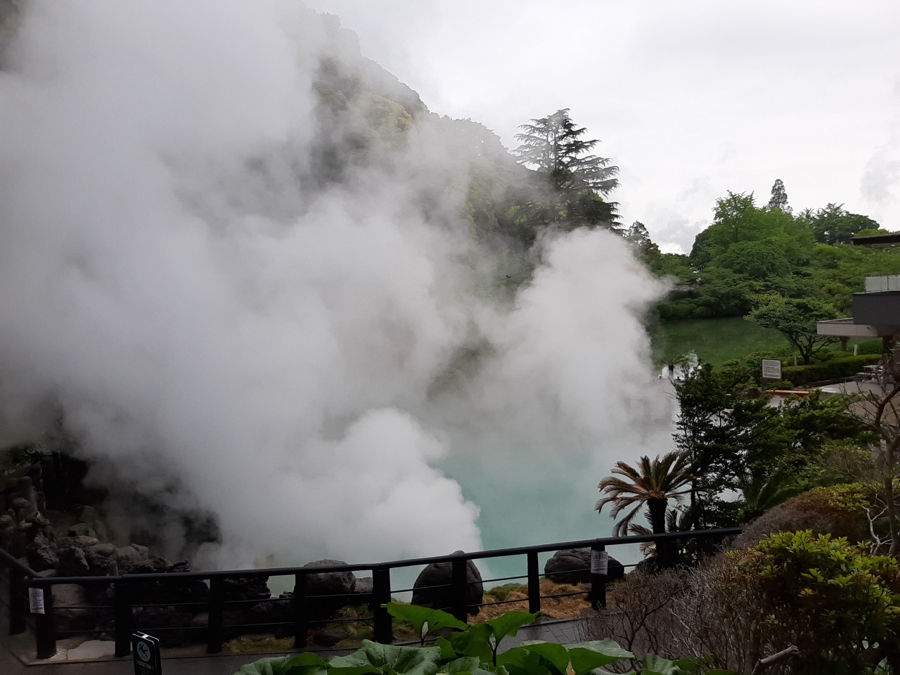 別府の地に降り立つと、あちらこちらから、モクモクと湯煙が上がっています。 日本一の温泉湧出量だそうです。
