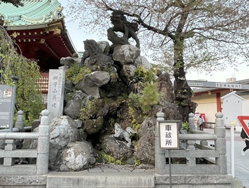 さて、石獅子。谷底の子獅子が親獅子を見上げている構図ですが、江戸時代に奉納された2頭の親獅子は当時のものでも、子獅子と獅子山は関東大震災で崩れて失われしまっていたそうです。60年以上経った1989年(平成元年)にようやく再建。被災している親獅子と子獅子とでは色合いが違う理由がわかります。 閉じる投稿日:2022/08/03
