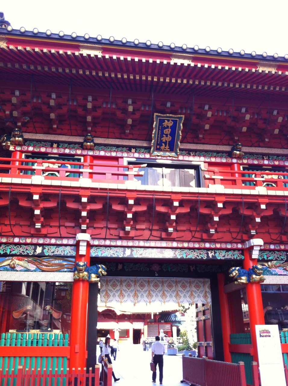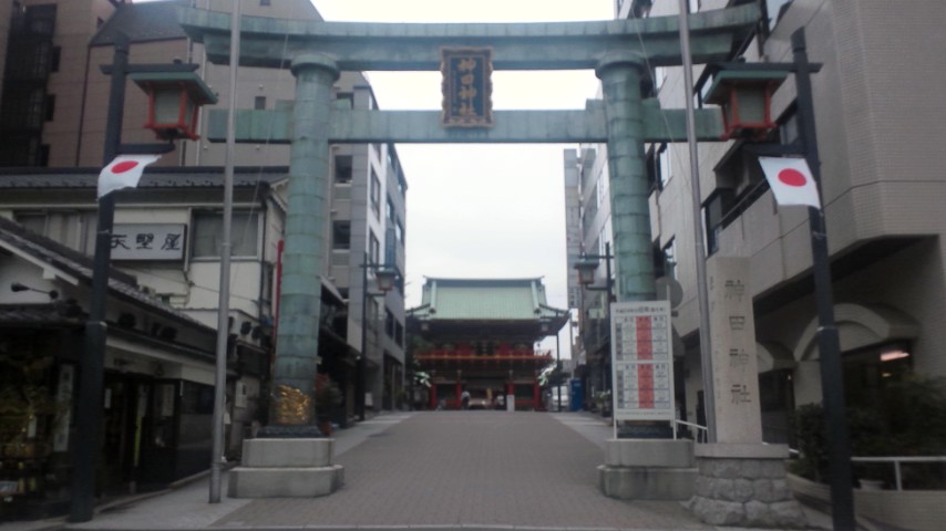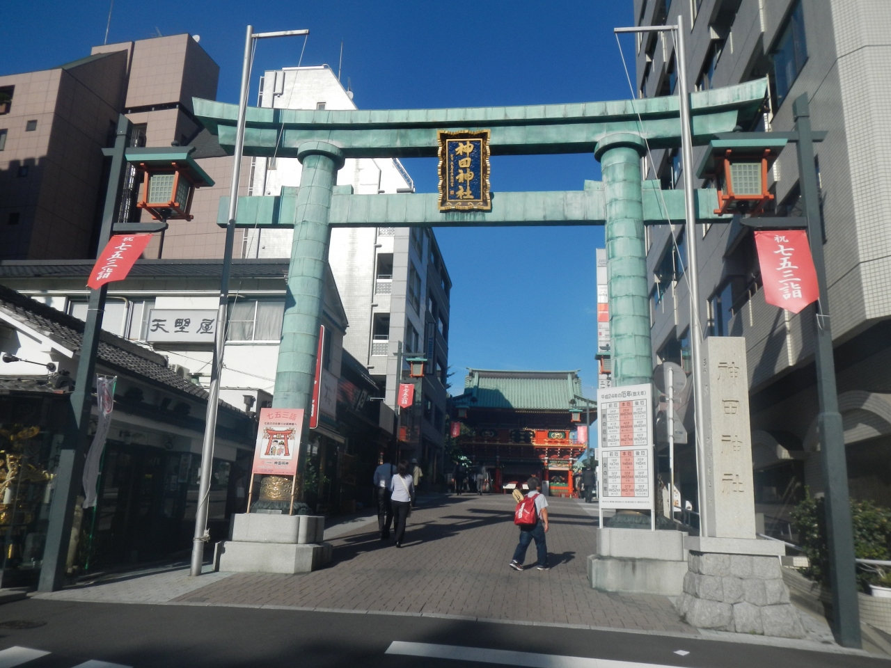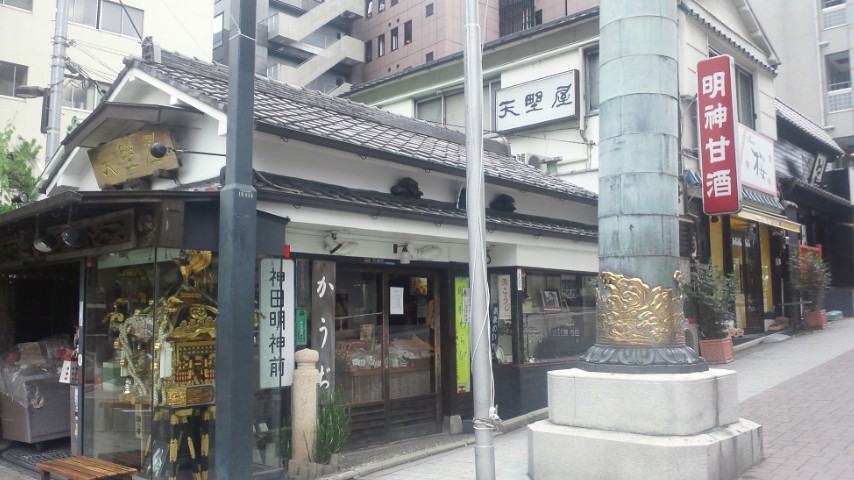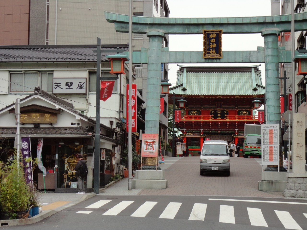 神田の氏神さまで5月の神田祭は江戸を代表する祭。鳥居脇の甘酒屋は江戸時代からの名物。