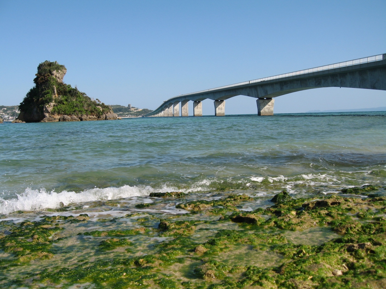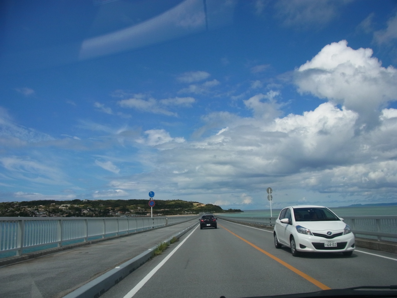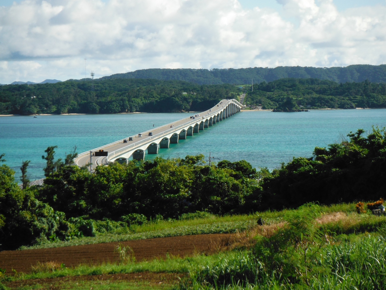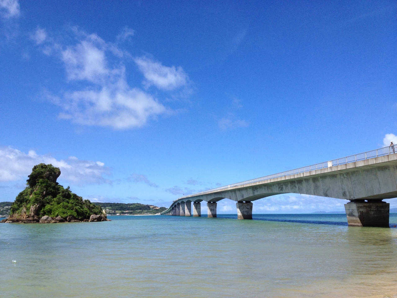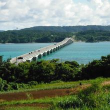 古宇利島の「お食事処文ちゃん」から橋を見た景色です。