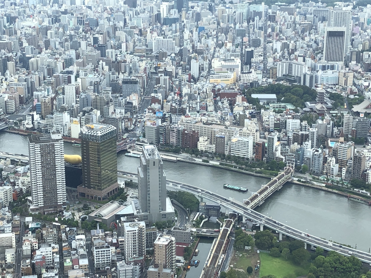 前日訪れた浅草が見えて喜ぶ母