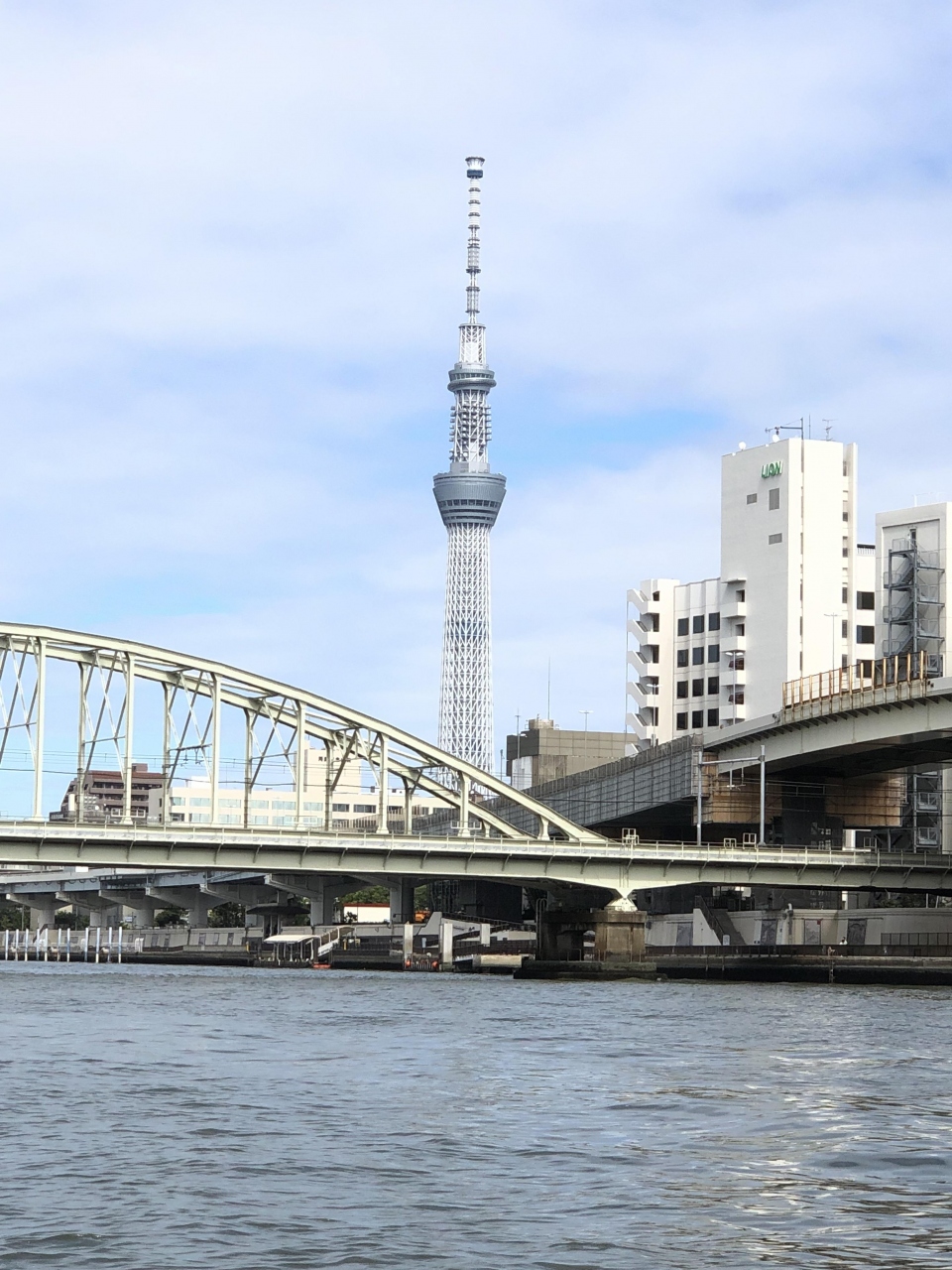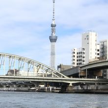 神田川クルーズの船の上から見えるスカイツリー