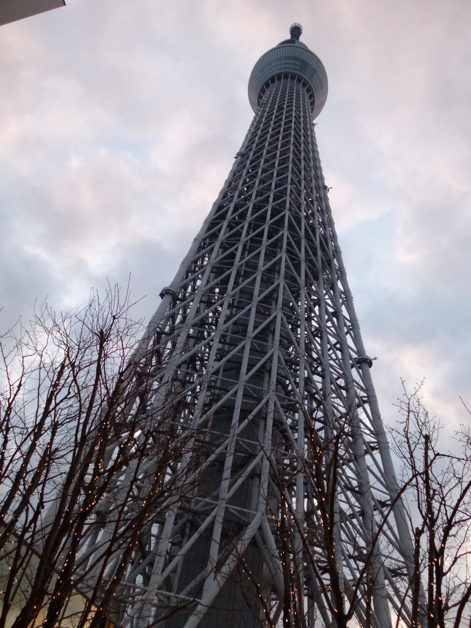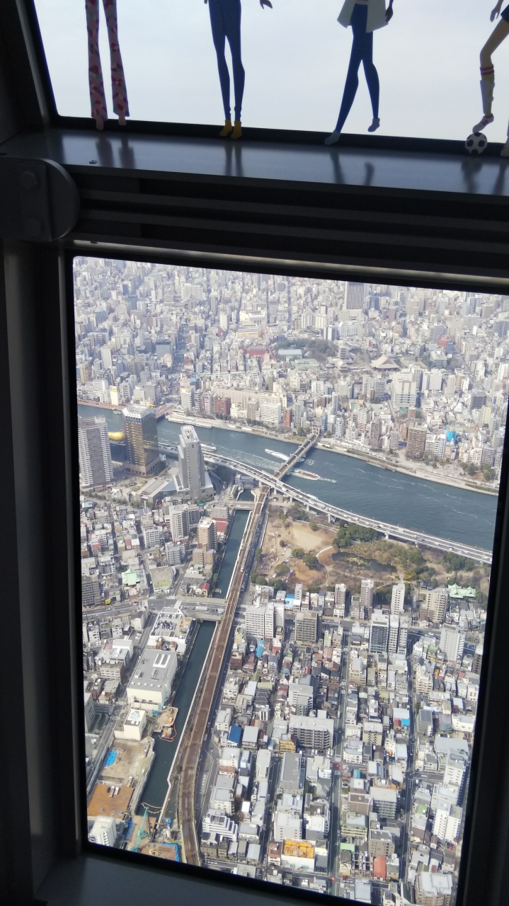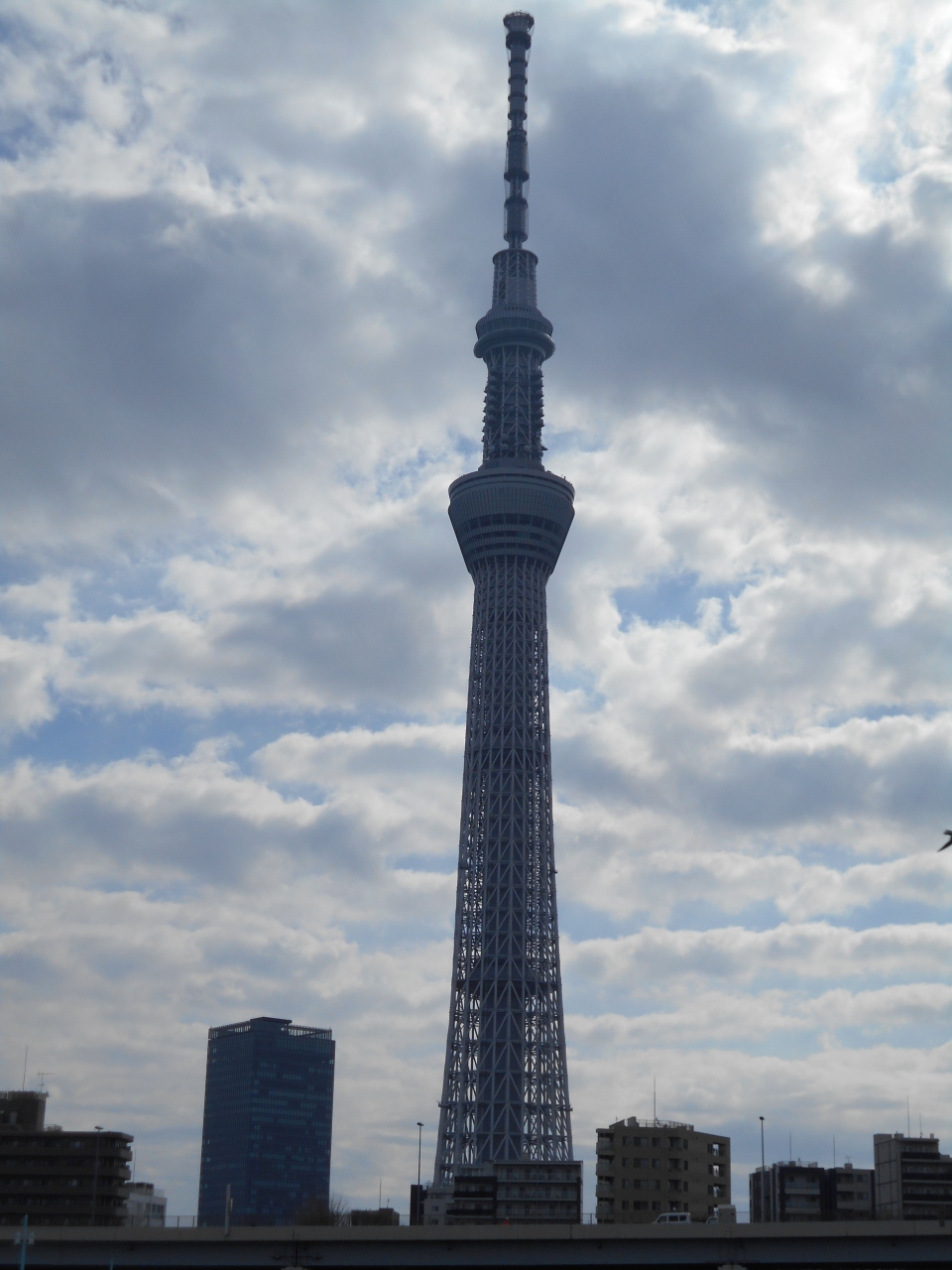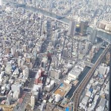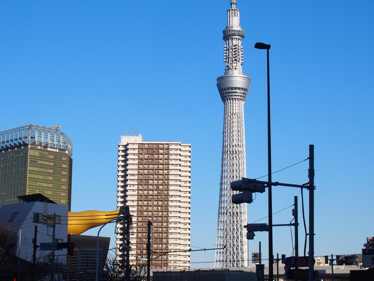 「真ん中の光ったビルがアサヒビール本社、その右のビルが墨田区