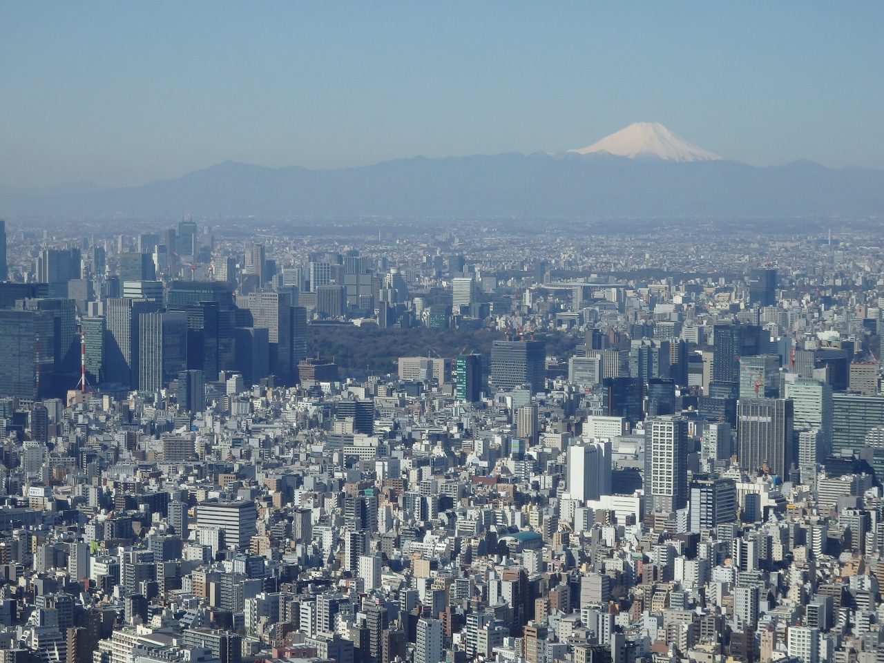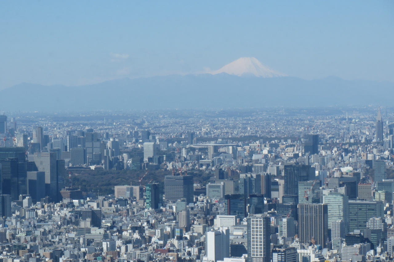 「手前の緑の所が皇居で奥には富士山がくっきり見えました。」
