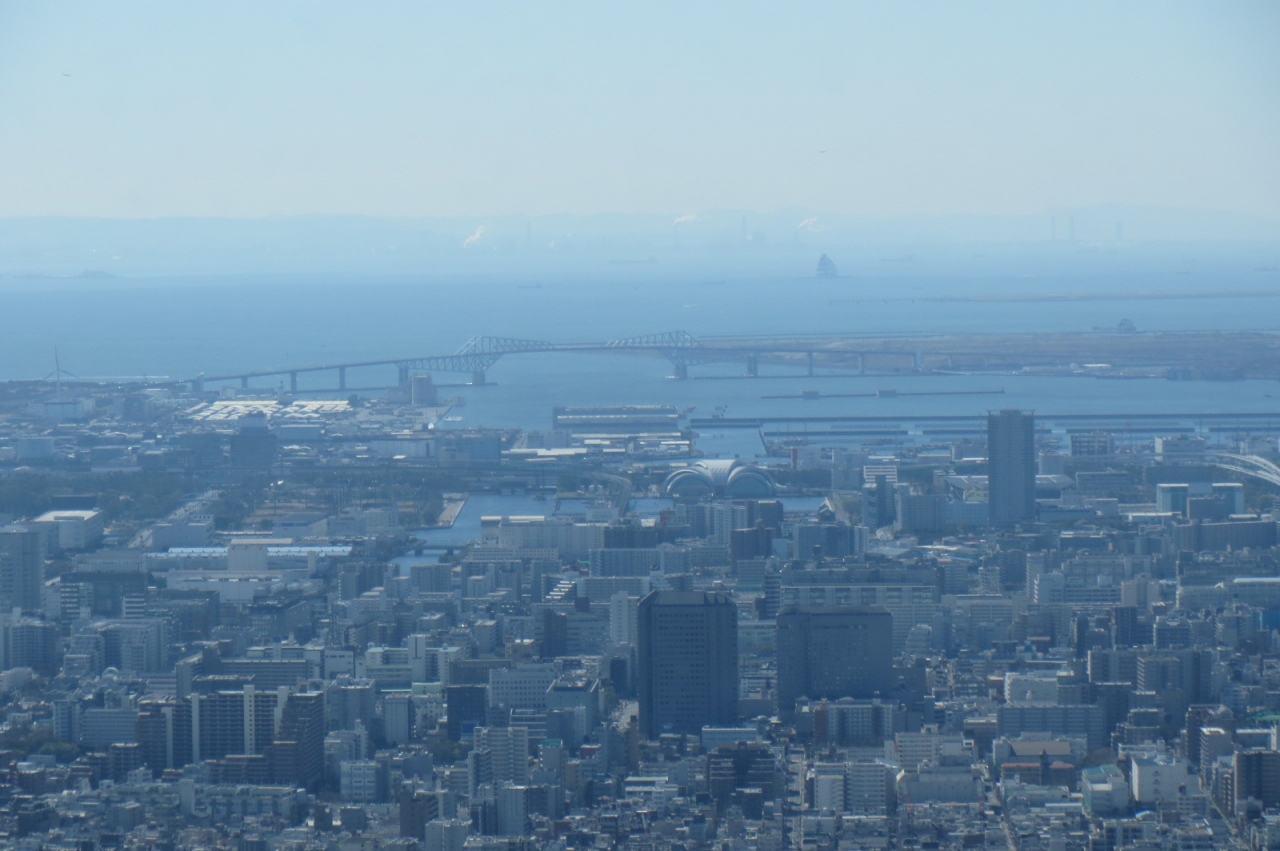 「東京ゲートブリッジと奥に見えるのは、風の塔」
