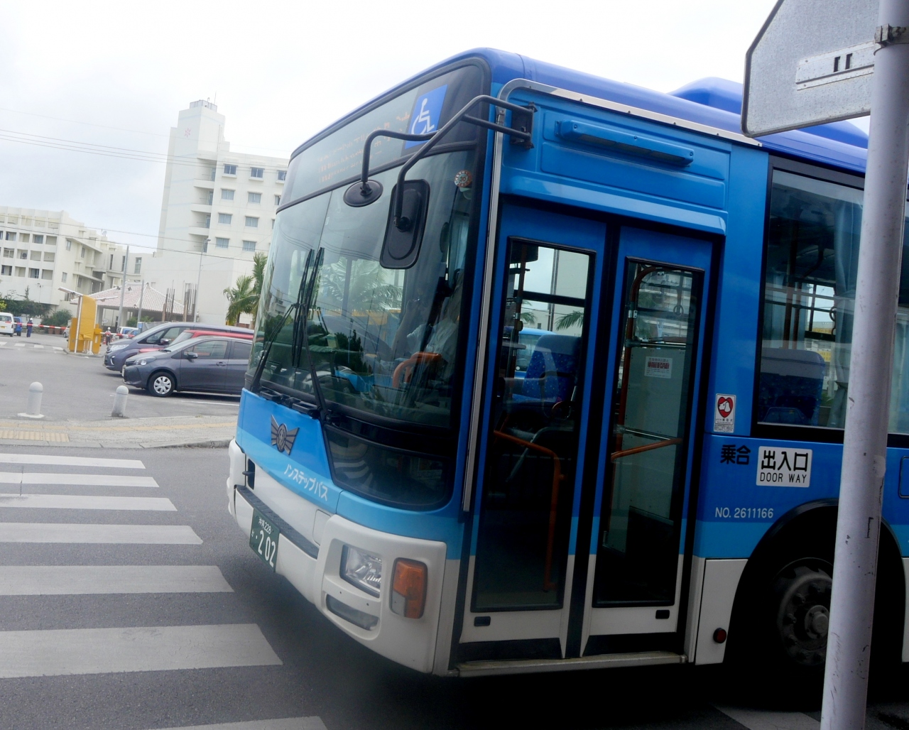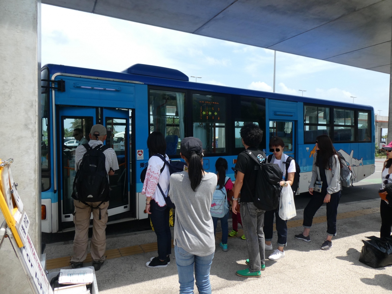 石垣空港の路線バス乗り場に停車中の東運輸の空港バス