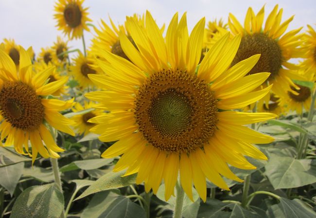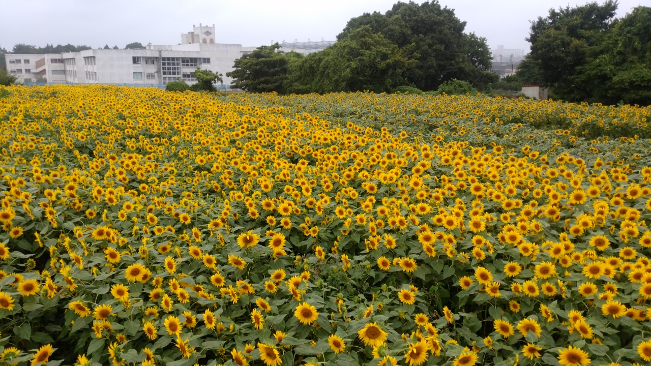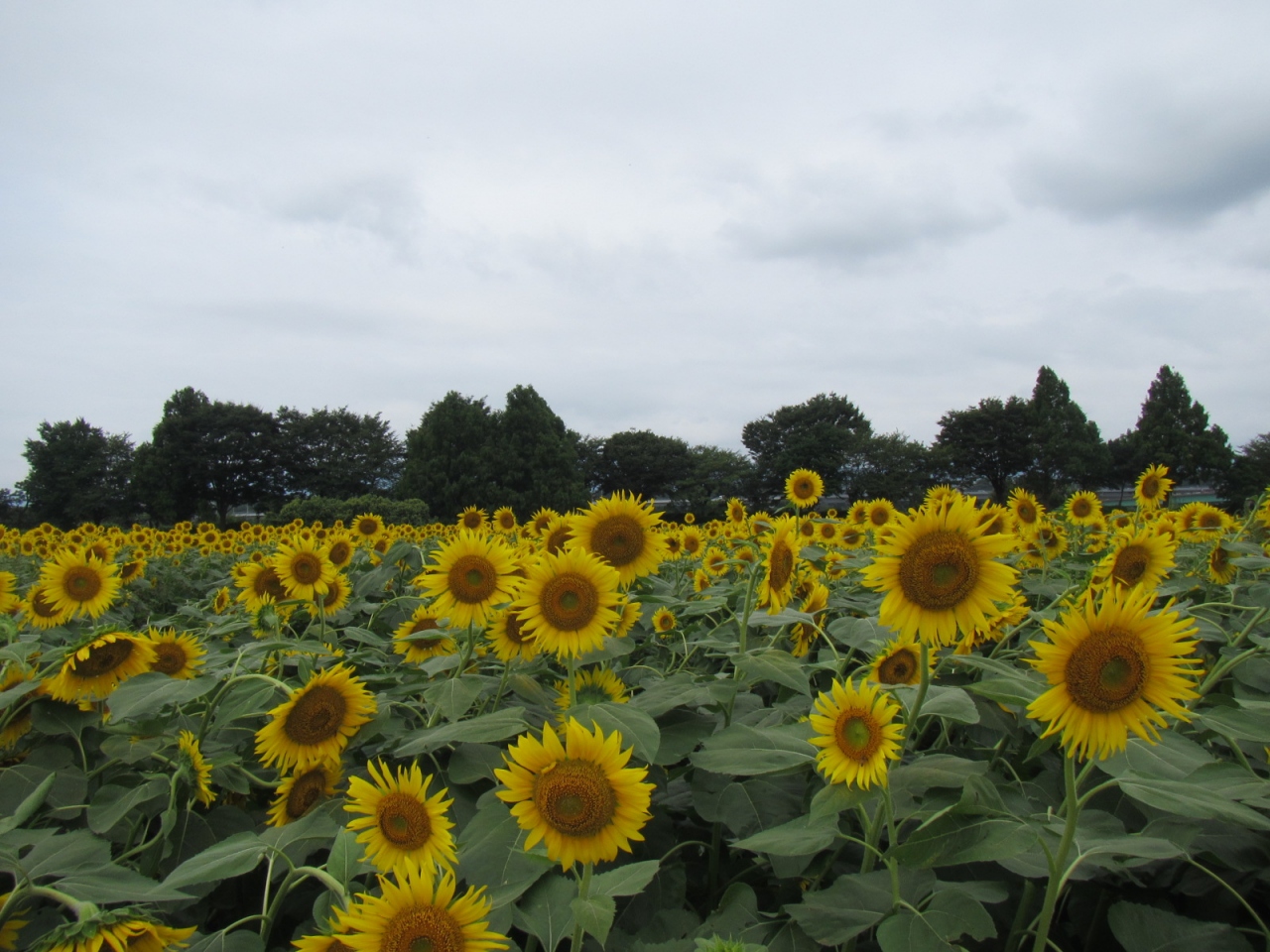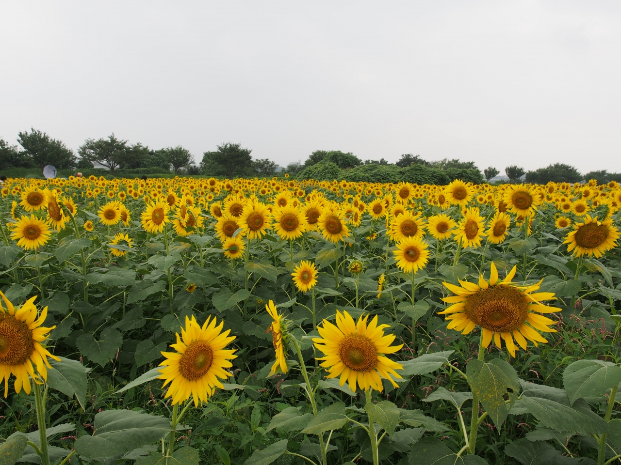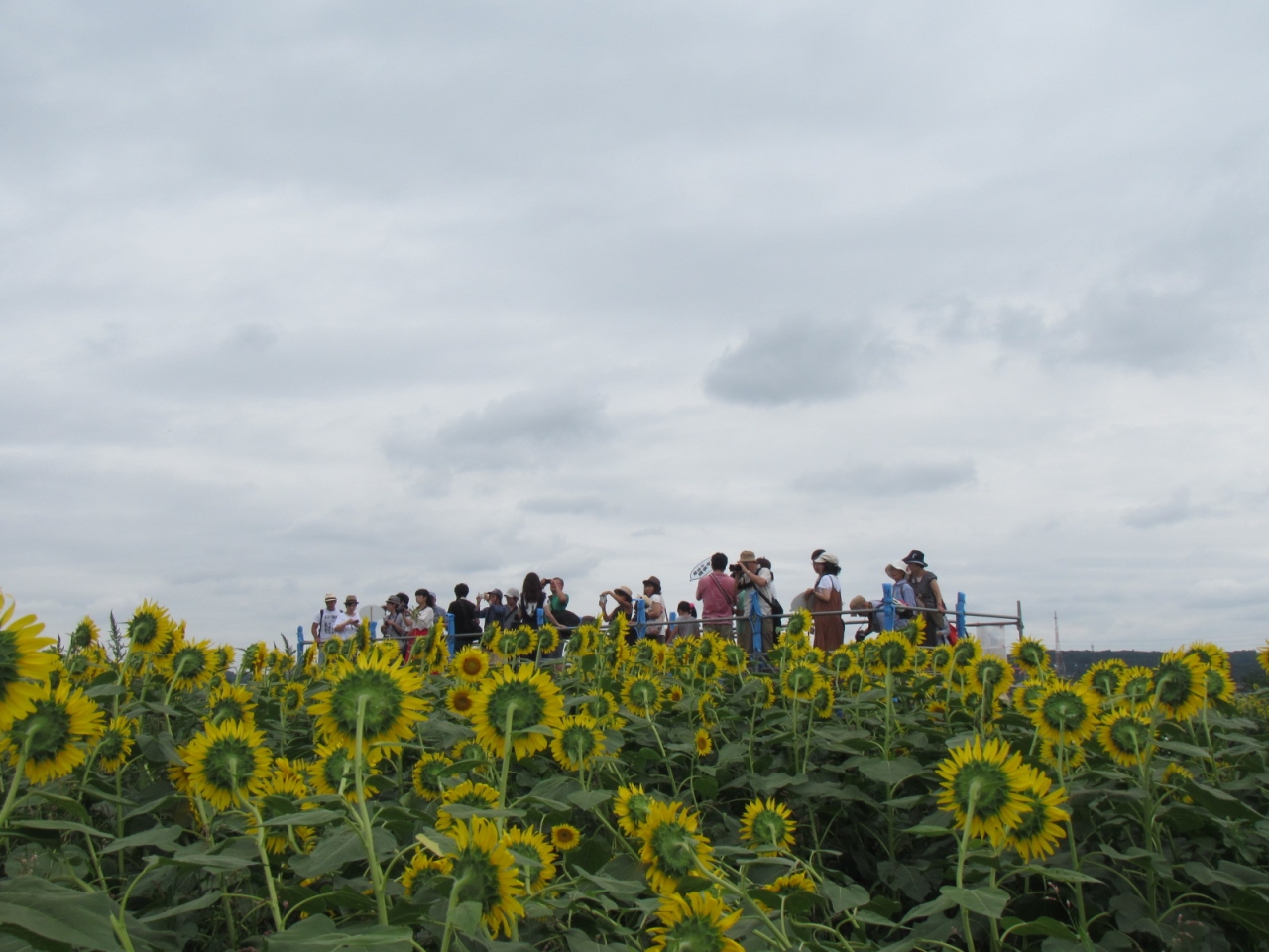 あいにくの曇り空でしたが、ひまわりは見事でした。