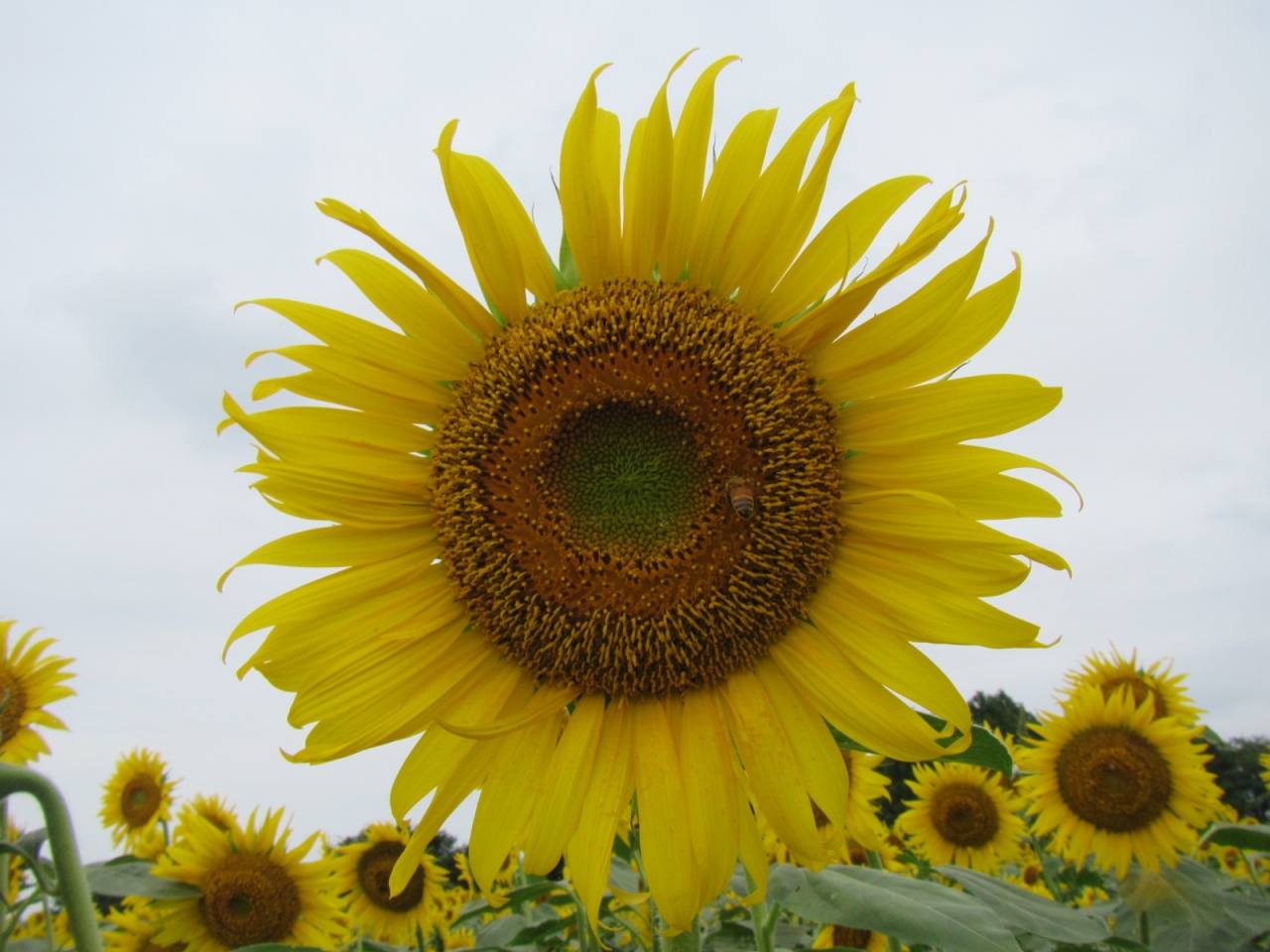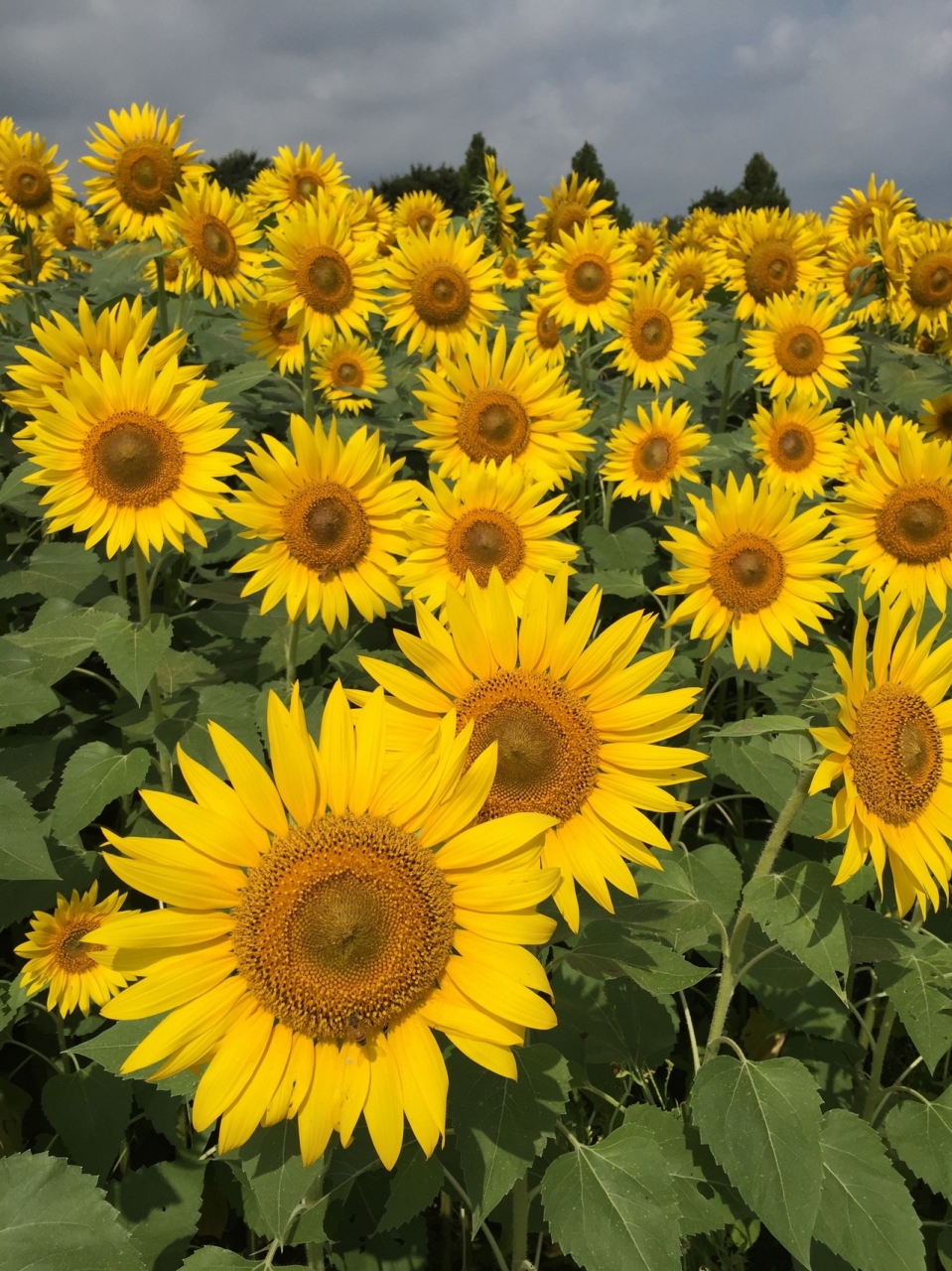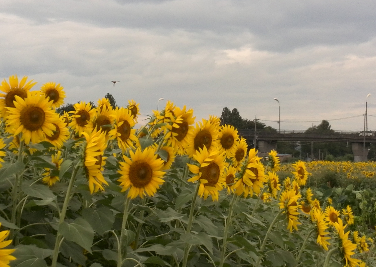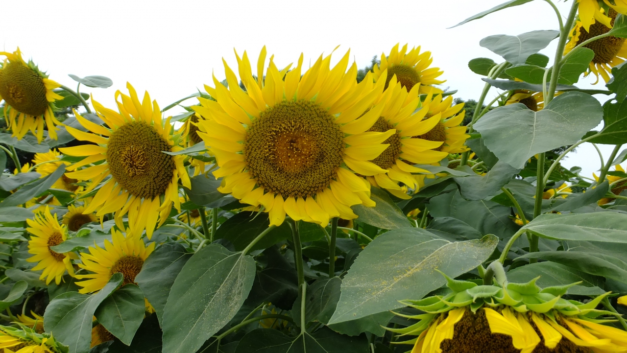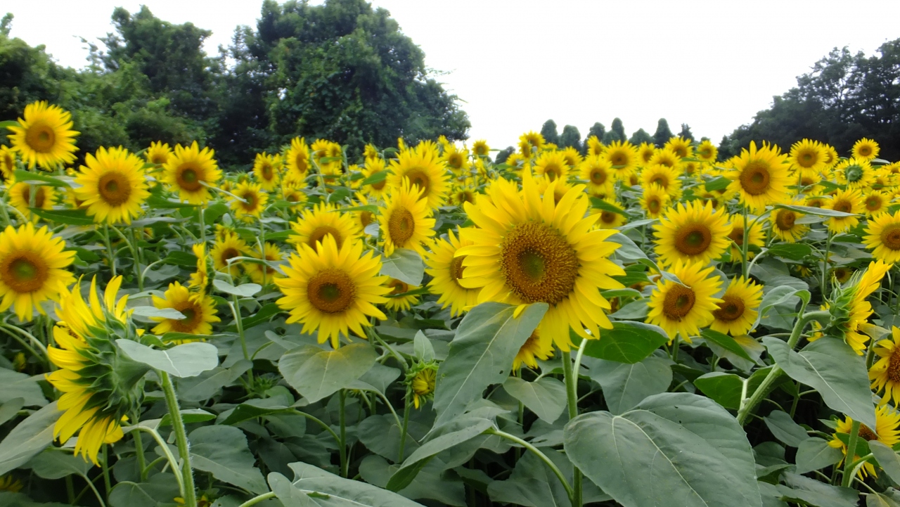 あいにくの曇り空でしたが、ひまわりは見事でした。