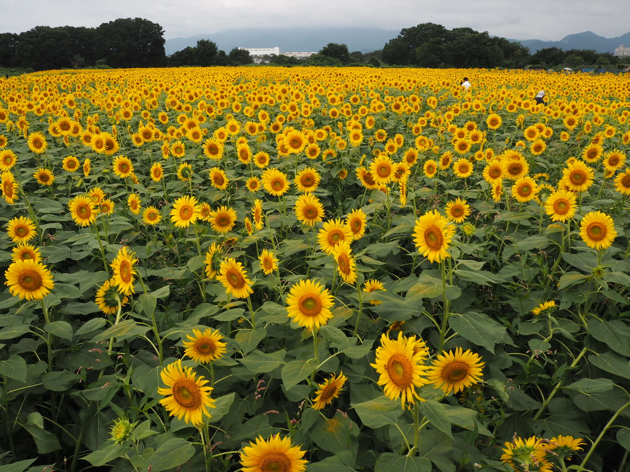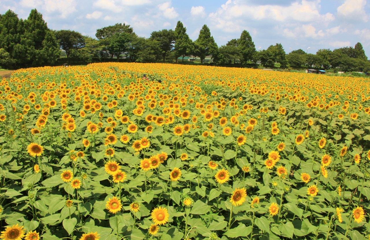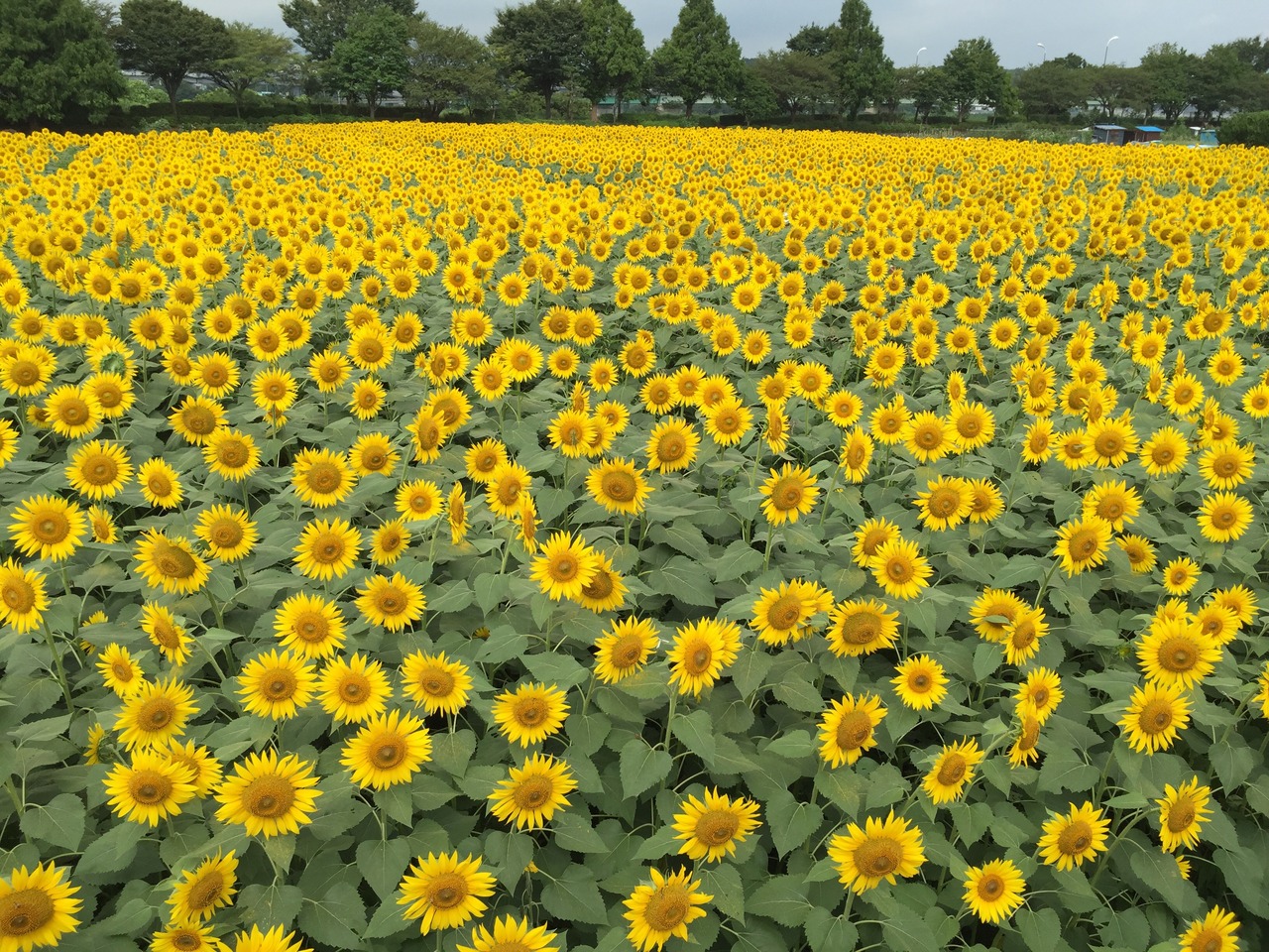 「2017ひまわりまつり」は栗原会場で7/21(金)~26(水)まで、約10万本、座間会場は、8/10(木)~15(火)の期間に約45万本が開花するそうです。
