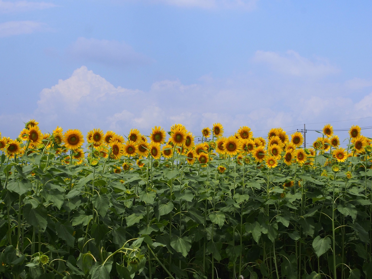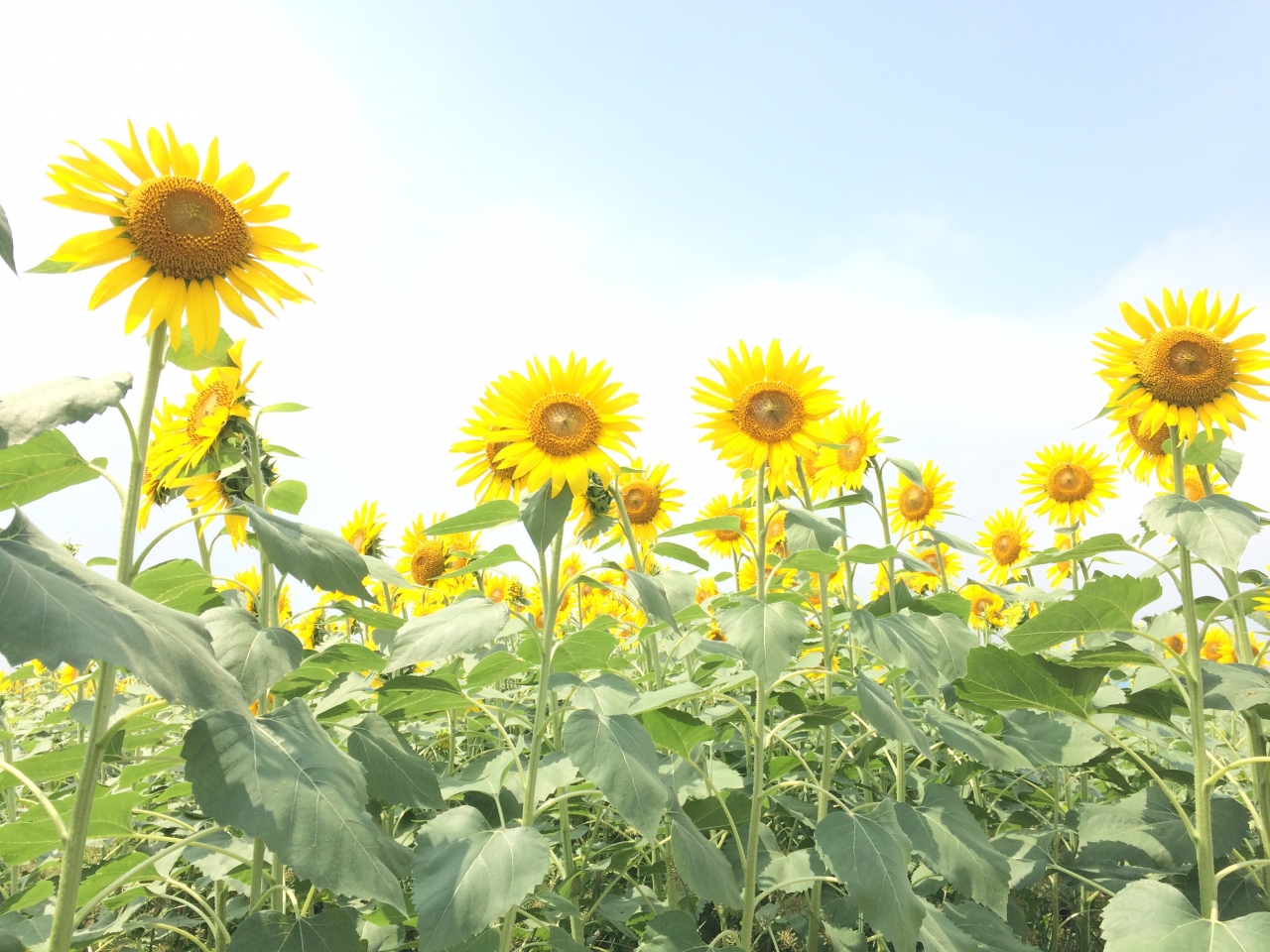 ひまわり畑の範囲は広く、時期をずらして咲くように配慮しているようで、満開の畑と全然咲いていない畑がありました。青空バックのひまわりは夏の風景でよかったです。それなりに人はいました。足元はよくないので、サンダル等はやめた方がいいです。
