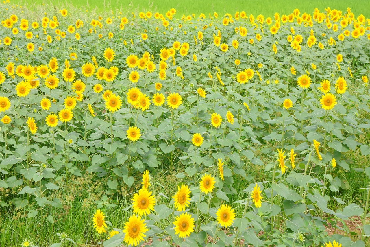 休耕... 続きを読む田を利用している感じで、田んぼの広さ一面にひまわりが密生していました。