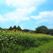 開花期にはひまわり祭りが開かれ、休日などは駐車場に停めるのに渋滞が起きるほどお客さんでにぎわっています。
