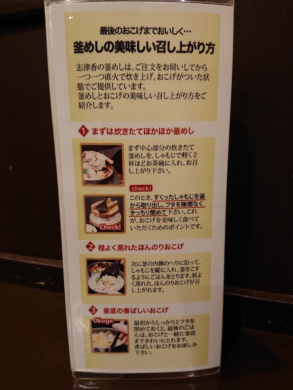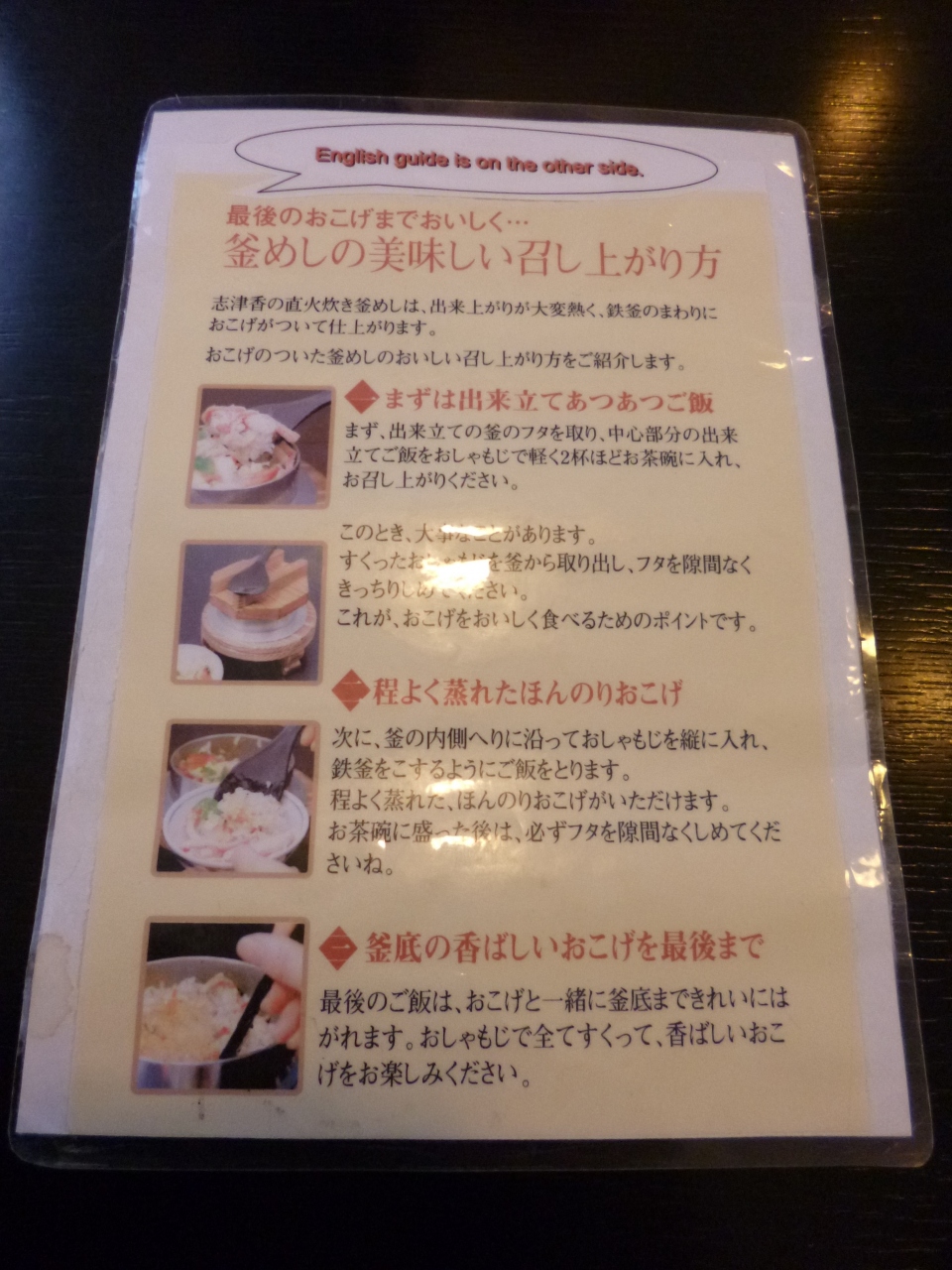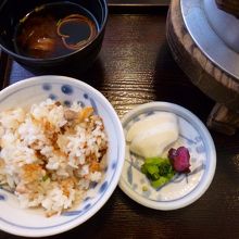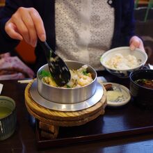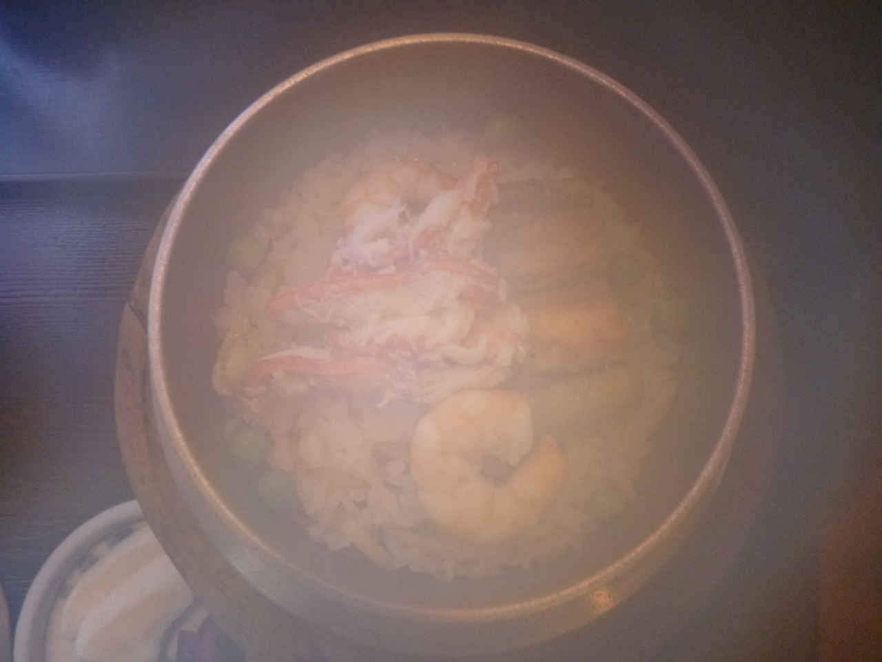 先に注文を聞かれていたので、着席してから間もなく釜めしがきました。