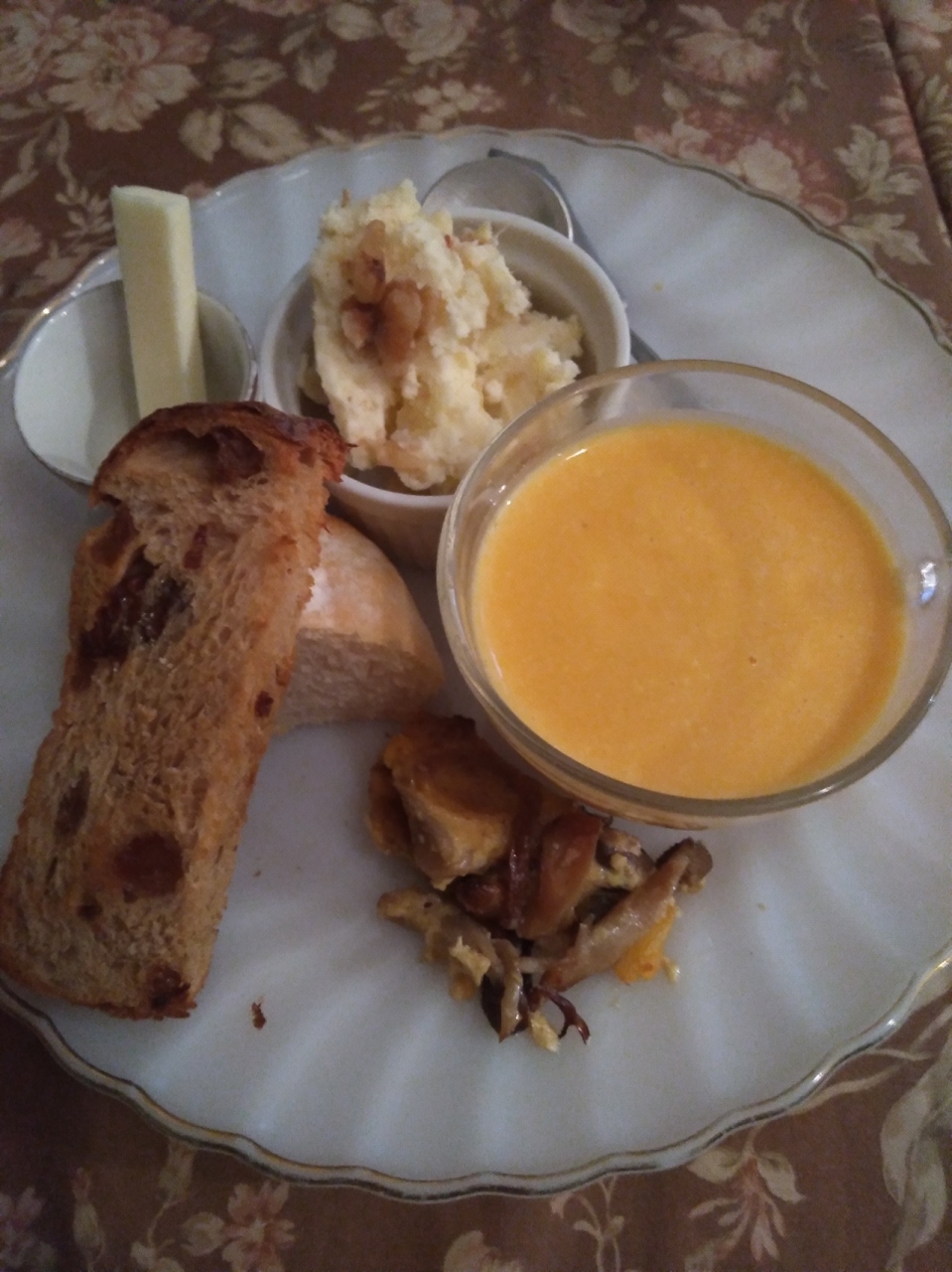 カボチャとキノコのゴルゴンゾーラグラタンに、赤ワインを頂きました。
