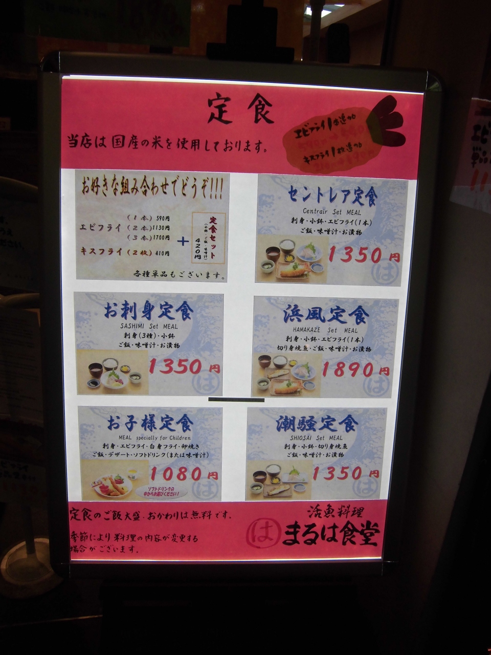 セントレア中部国際空港ターミナルの4階ちょうちん横丁にあります。まるは食堂は魚介のお店として地元では有名なようで、その支店... 続きを読むの一つとのこと。