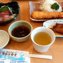 海老... 続きを読むフライ(2本)(1150円)、キスフライ(2尾)(410円)、酢だこ(450円)、海鮮サラダ(小)(480円)、ご飯(200円)、鯛あら味噌汁2人前(600円)