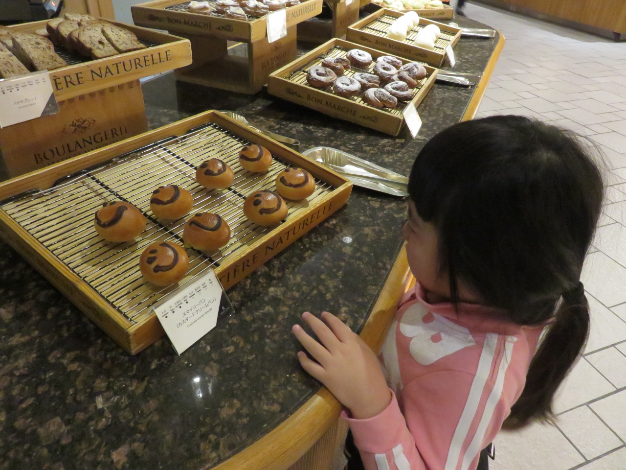 にこちゃんパンに夢中な娘。中のクリームは少なめ。