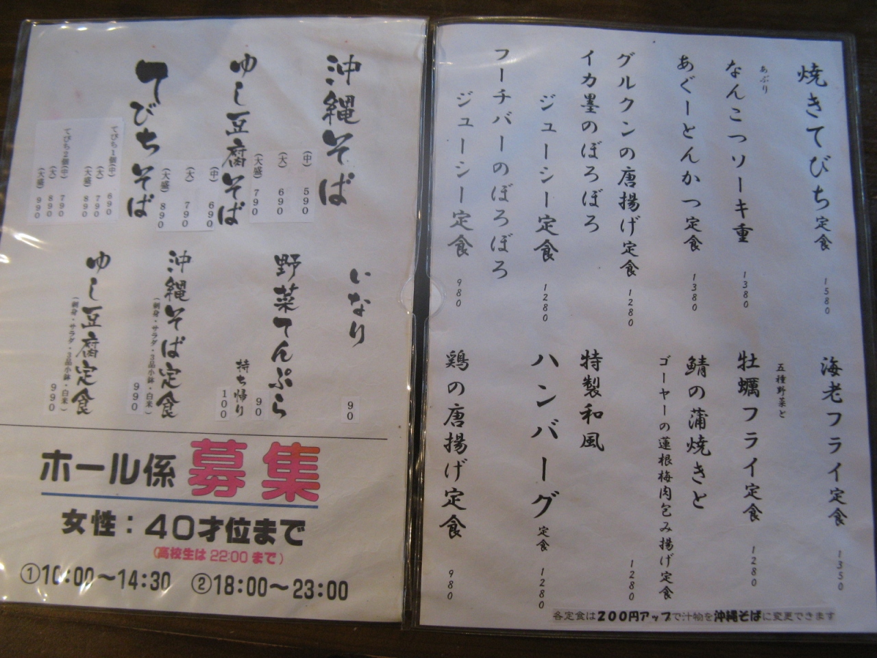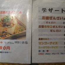 食事メニューはそれほど多いとはいえませんが、黒糖ぜんざいやアイスなどのデザートもありました。メニューの写真を添付しますので参照ください。