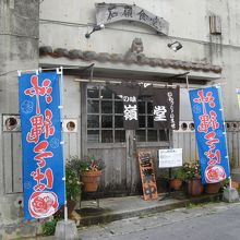 首里城から車で10分ほど、首里の石嶺小学校のすぐそばにある食事処です。店の前の道路を隔てたところに駐車場があります。