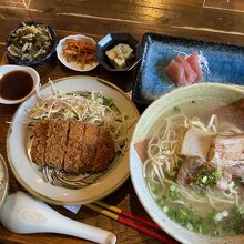 家内が、“なんこつソーキ重 1380円”、私が“焼きてびち定食 1580円”を頂きました。焼きてびち定食は、焼きてびちと野菜のかき揚げ天麩羅、マグロの刺身、味噌汁、小鉢などがセットになったものでした。煮付けされ普通のてびちは時々たべますが、焼きてびちを頂くのは初めてで、甘辛く味付けされたてびちは、焼き目が香ばしく、トロトロ、プルプルで美味しかったです。