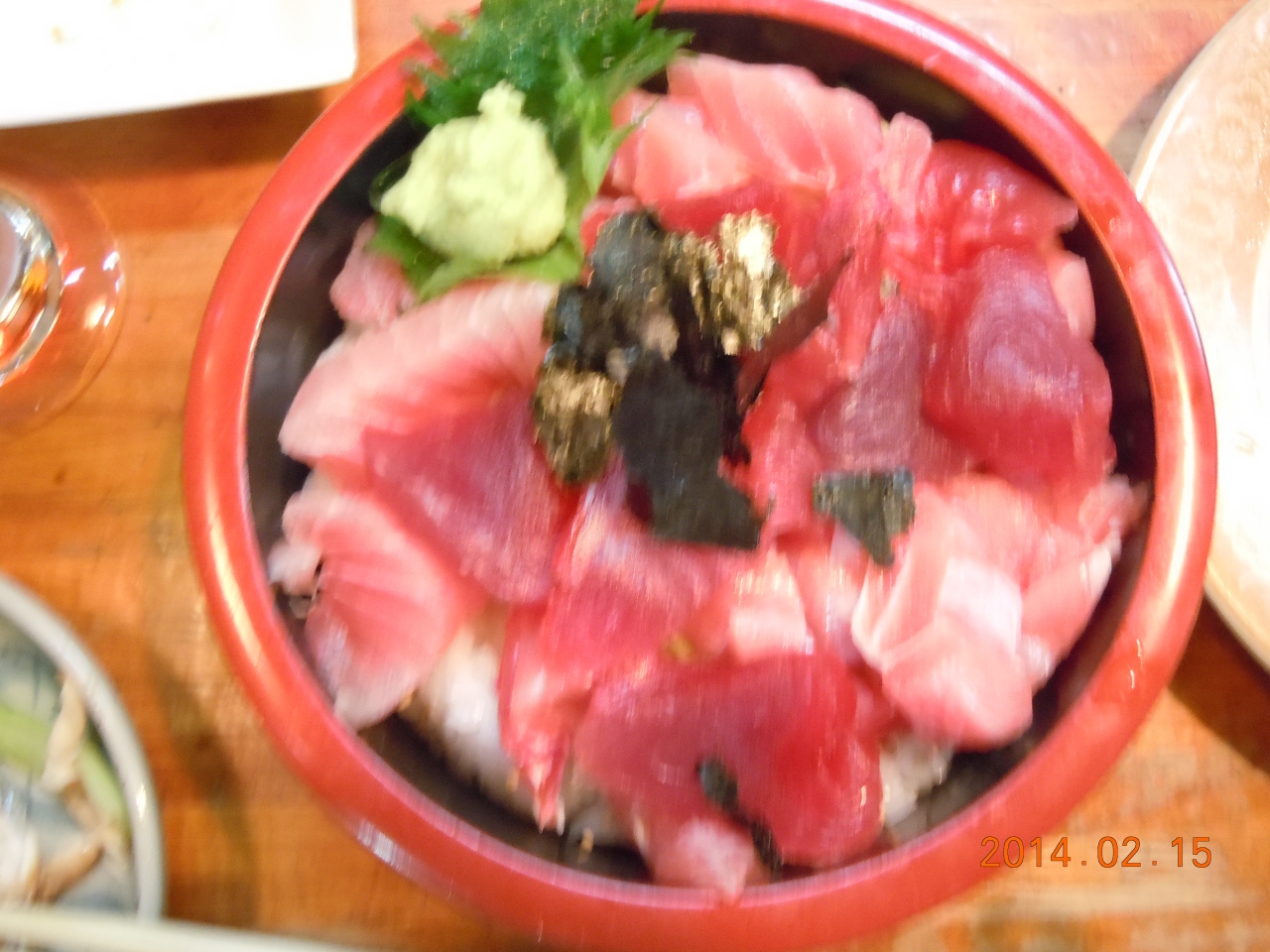 上鮨・マグロ丼・煮魚(あら)・タコの酢物とビールなどの飲み物を注文しました。 マグロ丼のマグロが前日よりトロと赤身が逆転してトロが多く入っていたようです。 また、煮魚がおまりにも美味しく一気に食べてしまいました。