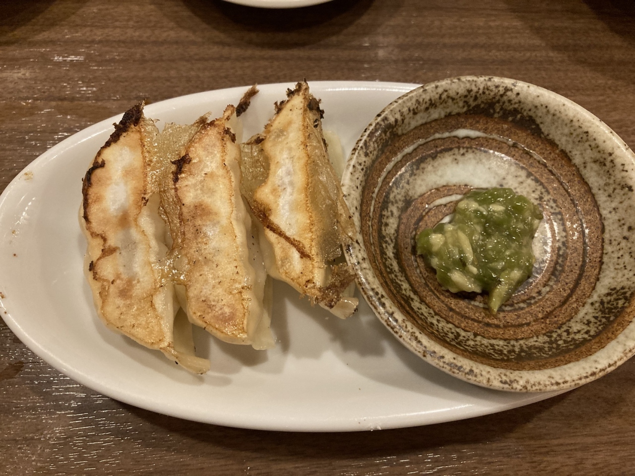 餃子は、最初、何もかもつけないで食べてほしいとのことで、何つけずにいただく。確かにパリパリの食感の中に餃子の餡のアジガしっかりわかる。追加で「豚トロ餃子(ハーフ)」を注文。思ったよりも小さめだが、山わさびをつけるとスッキリして美味。そのままても良いが、酢醤油、味噌だれでも美味だった。創業21年で1億4570万個包んだだけのことはある。少し味が濃い目なので、お酒がススム。少し小さめなので、お腹いっぱいにしようとするとコスパが悪いかも。二次会利用ならかなり良い。ただ、現金オンリー(Dポイントは貯まる)なのが残念。 閉じる投稿日:2022/07/17