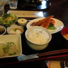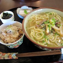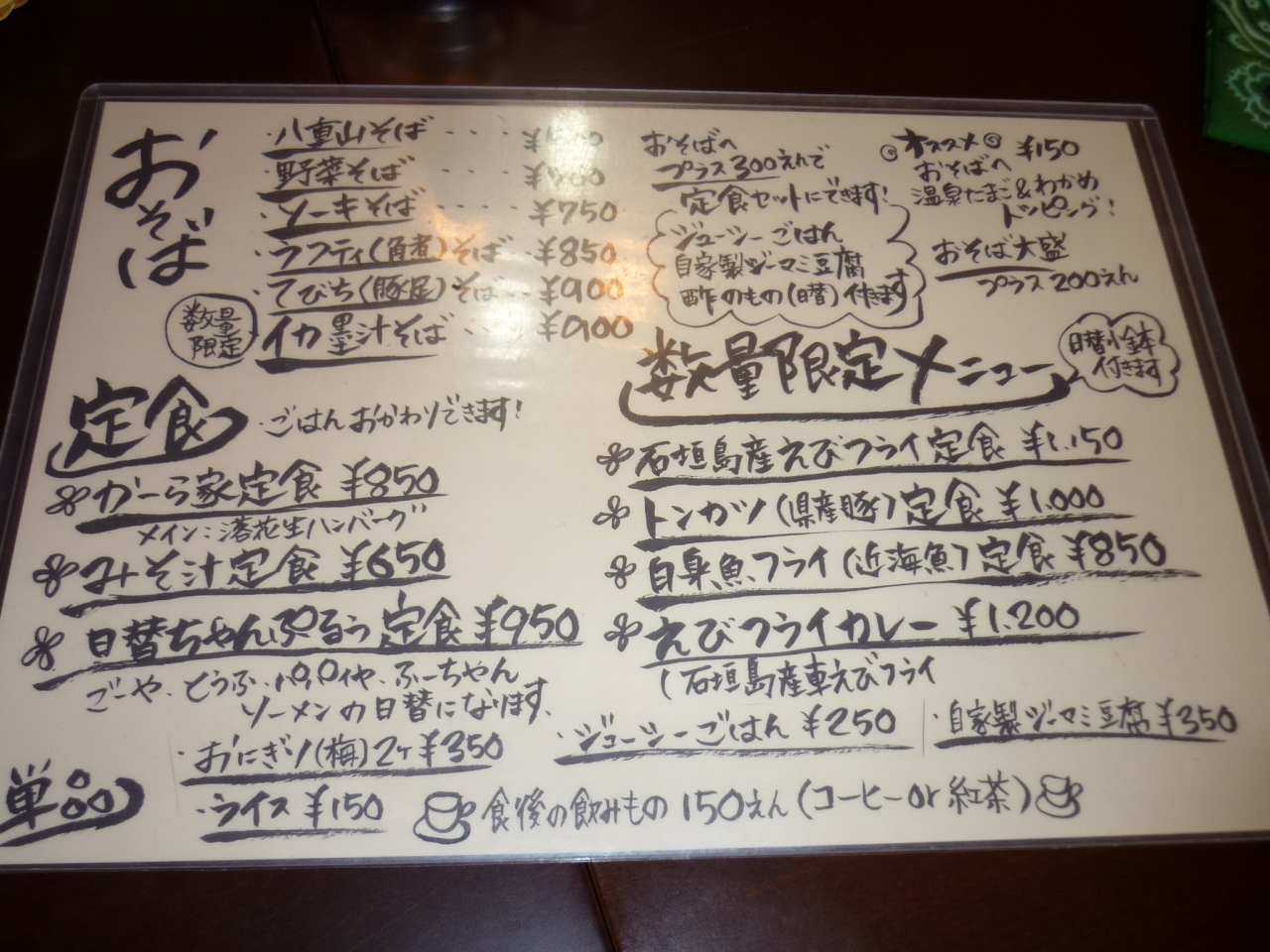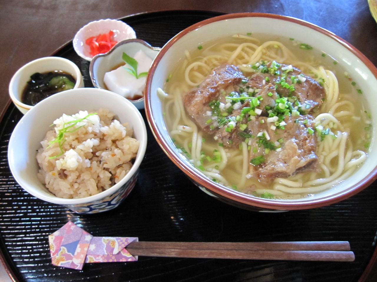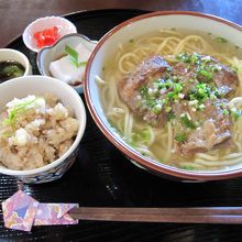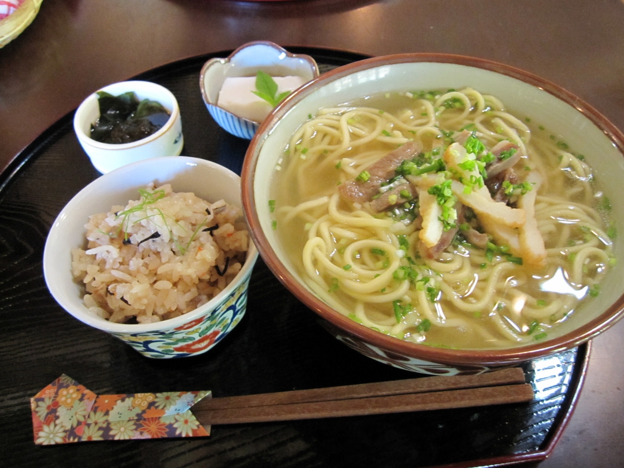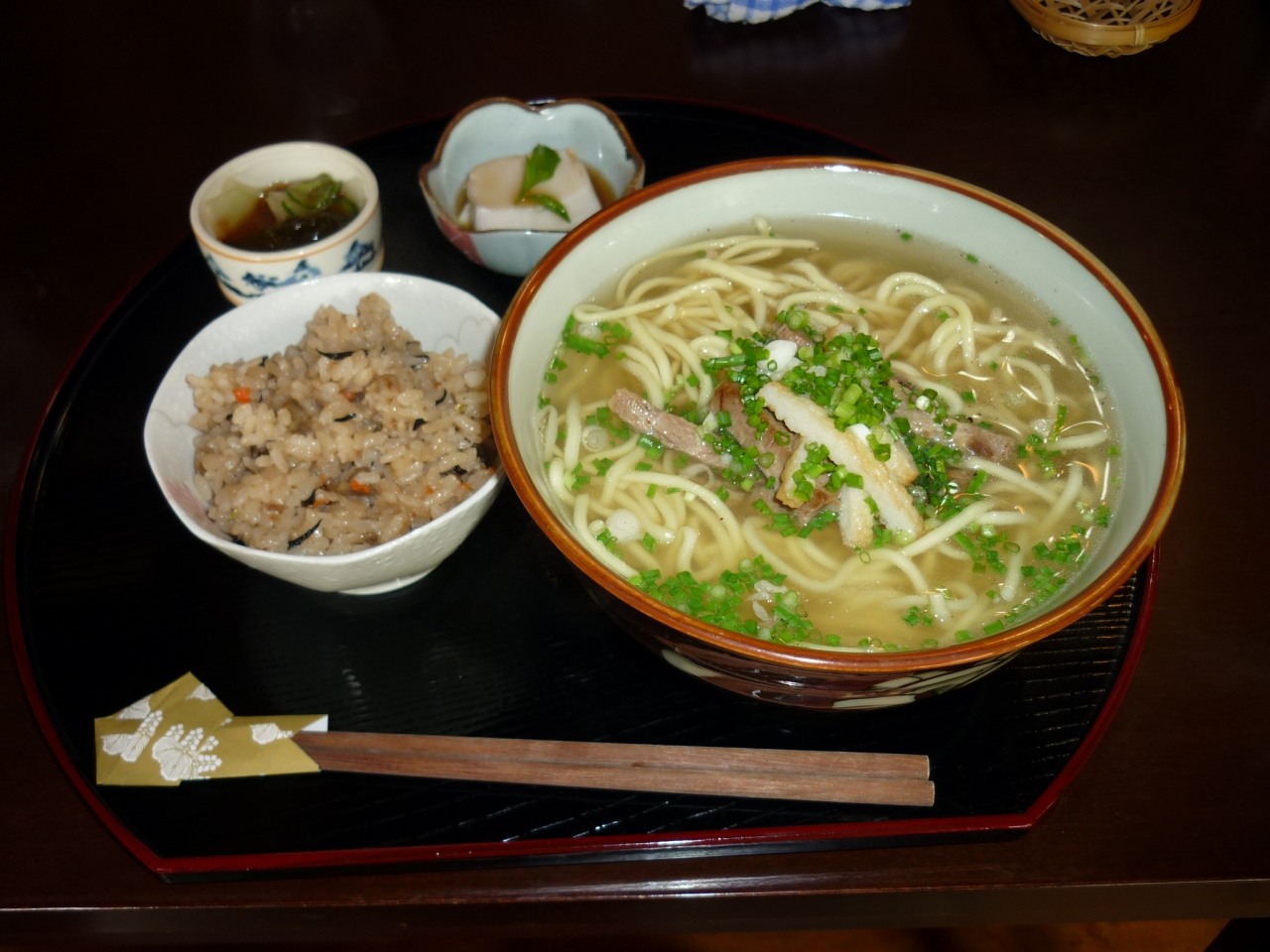 おそば類は、+300円でジューシ(沖縄炊き込みご飯)やジーマ豆腐などがついた定食にできます。やさしい味でおいしかったです。