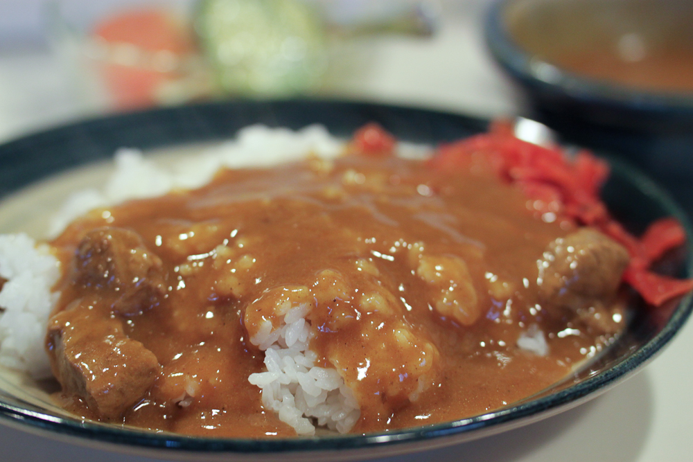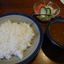 カレーとライスは別盛りで、自分の好みの量をライスにかけながら食べます。