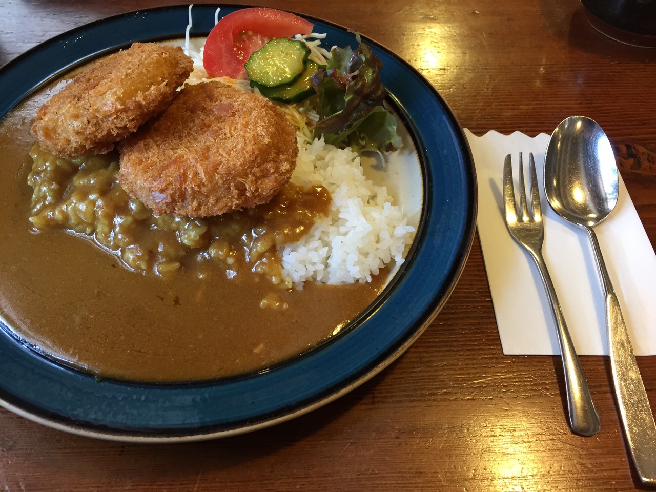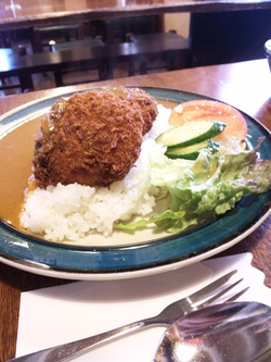 辛さ表示もあり、写真のカニクリームコロッケも甘口で女性に人気ですが、後味にピリッとする香辛料の味がします。