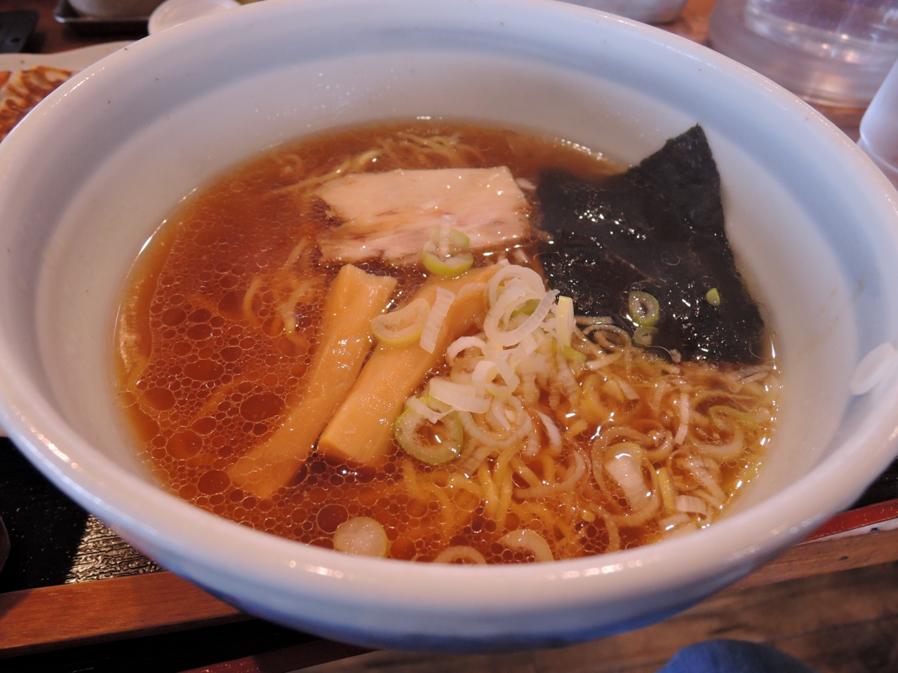 上田市にあるラーメン専門店。長期宿泊のためコインランドリーを利用していて、偶然見つけたお店。大きな赤い看板が遠くからでもよ... 続きを読むく見える。ランチ時間のためか、店内は6割がたのお客さんで賑やか。カウンター席とテーブル席がある。おひとり様なのでカウンター席へ。オーダーしたのは餃子セット(980円)。しょうゆラーメンと焼き餃子だ。ラーメンはあっさり系のスープだが、コクのある味。麺はやや細麺、メンマ・チャーシュー・板海苔が乗っかっている。シンプルなラーメンだが、自分好みの味で満足。焼き餃子は5個。ちょうどよい焦げ目が付いている。旨みのある具材が使われていて、なかなかの味わいだ。久しぶりにやみつきになりそうだ。 閉じる