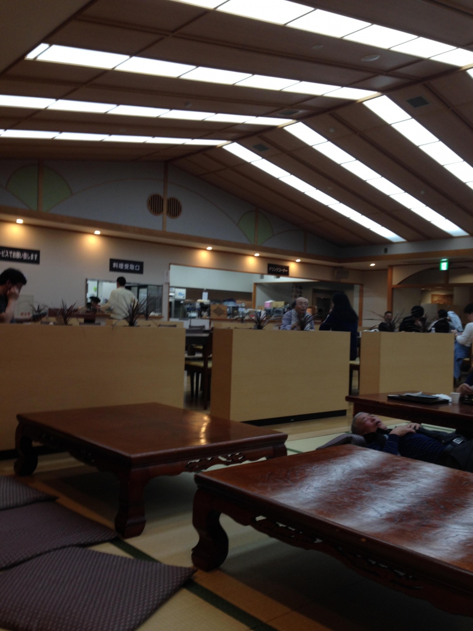 温泉の後は食事処で休憩しました。ほうとうや信玄ソフトなど山梨らしいメニューがありました。富士登山後の温泉&ビールは最高でした。