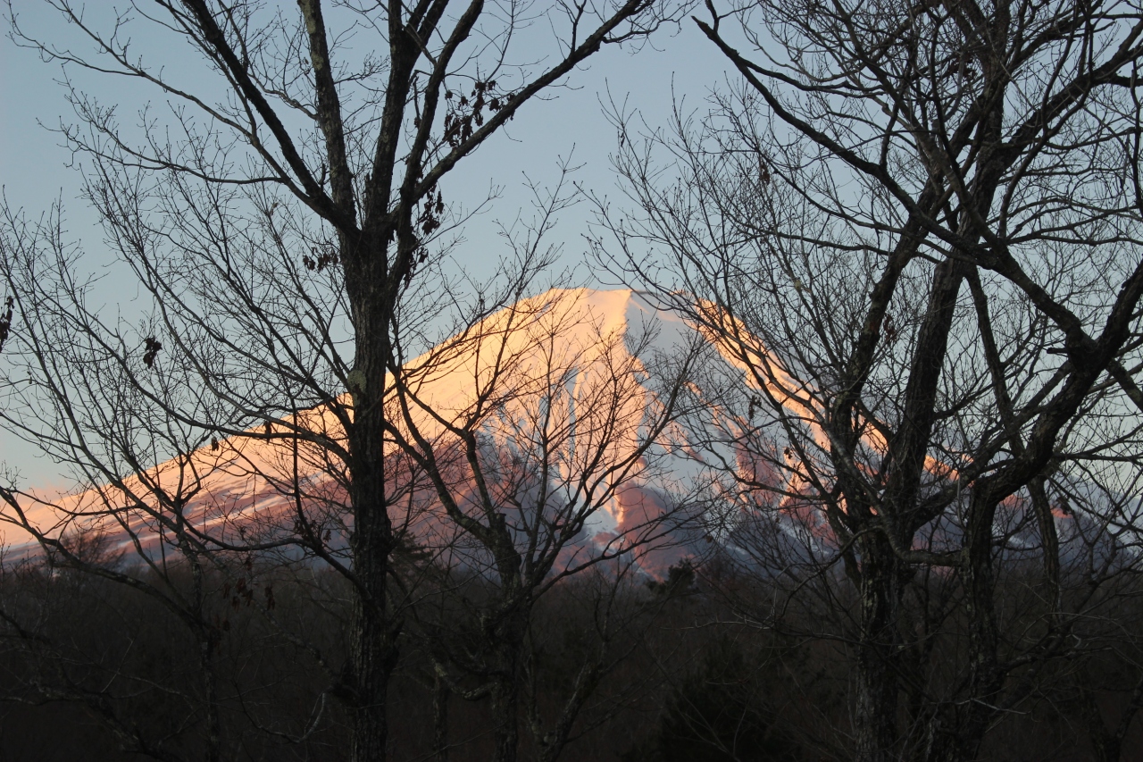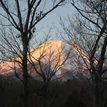 浴場から朝焼けの赤く染まった富士がきれいに見えます