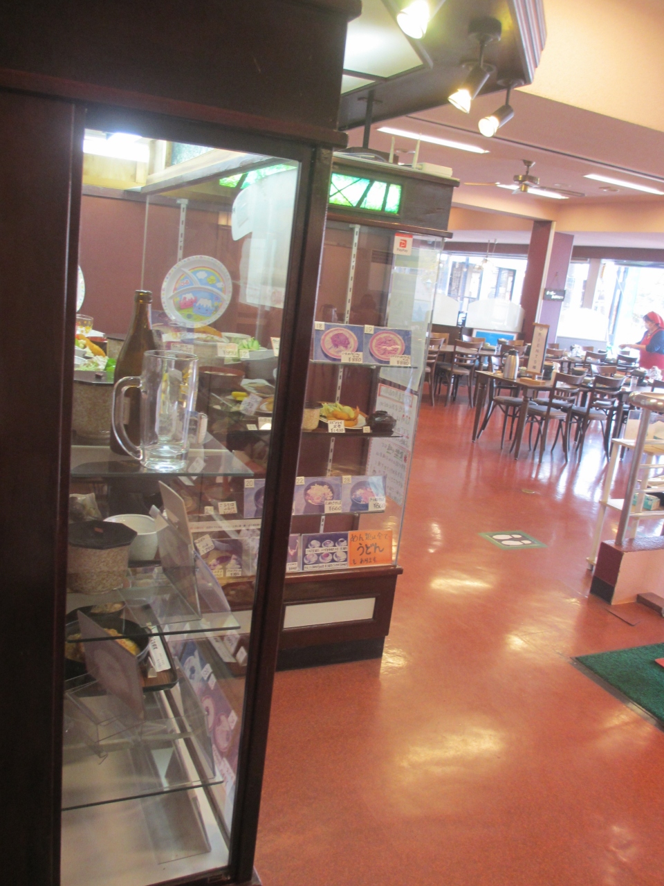 1階はお土産屋さん、2階が食事処になっています。3階は団体席になっているようです。1階から2階に上がる階段は昔ながらの急な階段です。足の悪い方はエレベーターを利用した方がいいと思います。