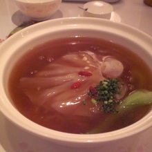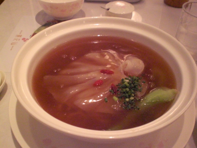 点心は、椎茸入りシュウマイと、カボチャ色した皮の星形のエビ入りシュウマイと、緑の皮のイカ入り魚のすりみのシュウマイで、どれもしっかりした味でおいしかったです。