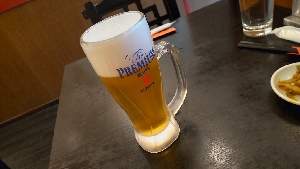 真ん中あたりのテーブル席に座って、生ビールを注文する。