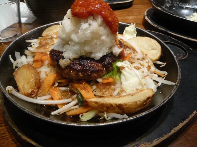 ハンバーグは、肉本来の味が楽しめる「ビーフ100%ハンバーグ」と、ふっくらジューシーな「合挽きハンバーグ」の2種類がありますが、ビーフ100%の「旨!ハンバーグ」(約150g 832円)を注文。