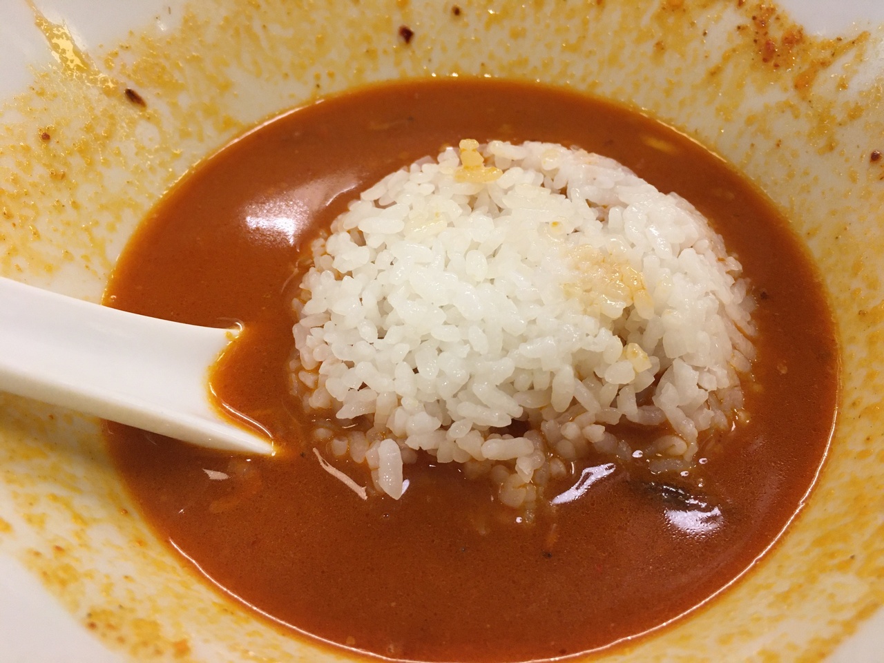 そして、最後まで温存していたご飯を、スープに投入です。(あ~、最後までスープを残しておいて良かったぁ)