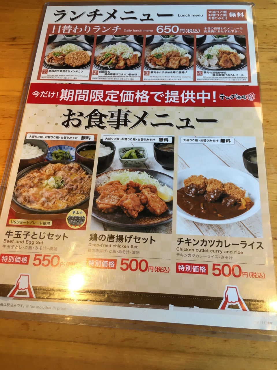 ワンコインランチあり