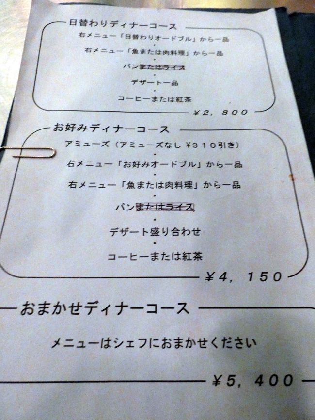 フレンチレストラン 洋食屋の夕食