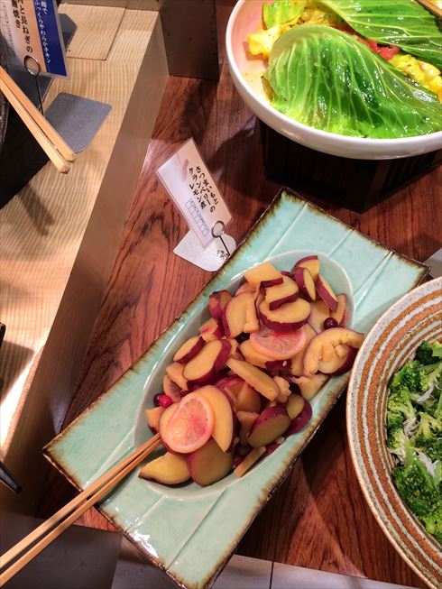 和食を中心としたビュッフェ形式のレストランです。野菜を多く取りたいときには、ここで食べる事をお勧めします。