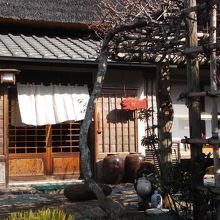 ご当地散策の折、茅葺き屋根の農家の御宅発見、門のところに鎌倉市景観重要建造物のプレートが付いていました。その古民家が母屋でしょうか、玄関にノレンが・・。聞いたところ完全予約制(4名様から会席和食)、よって食事はしておりません。