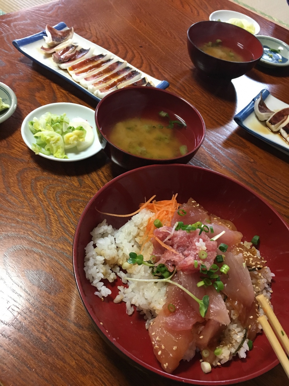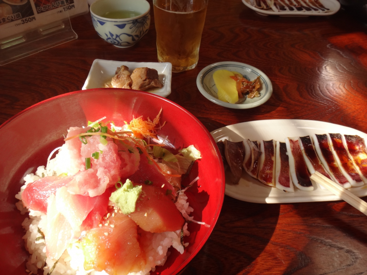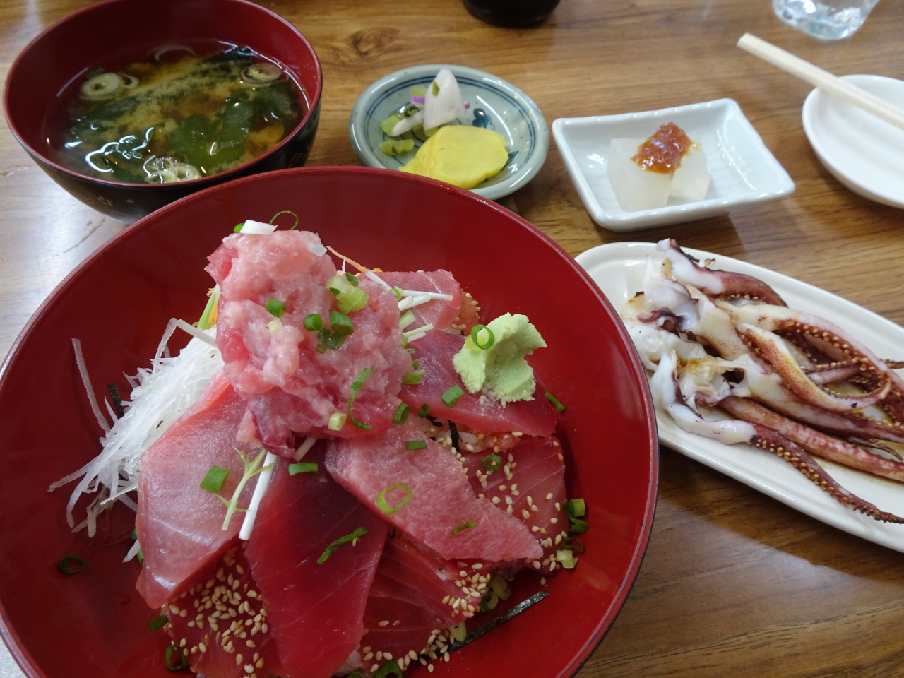 中トロに赤身、漬けまぐろにビントロとまぐろ三昧で、まぐろも厚切りでした。