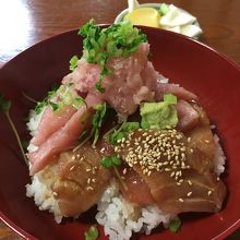お料理はネーミング通りまぐろてんこ盛り