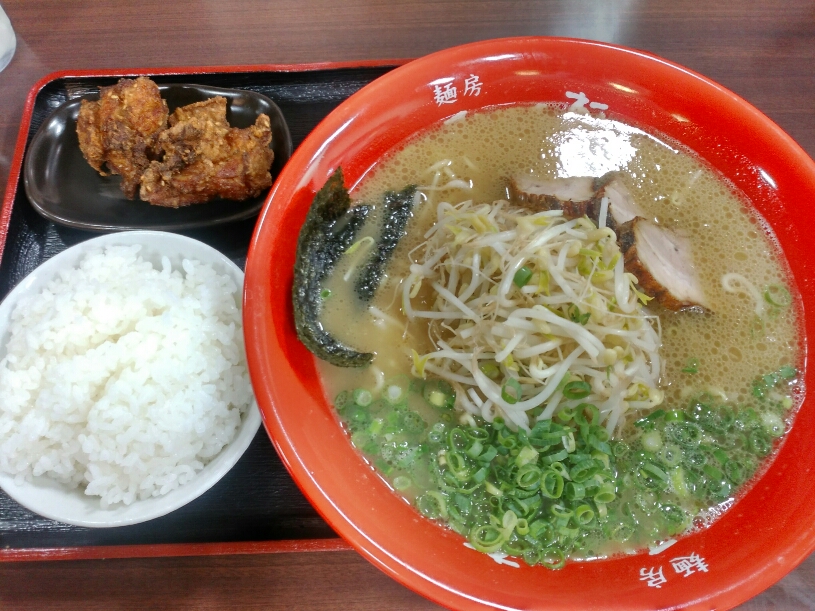 ラーメンと唐揚げ、ご飯のセット