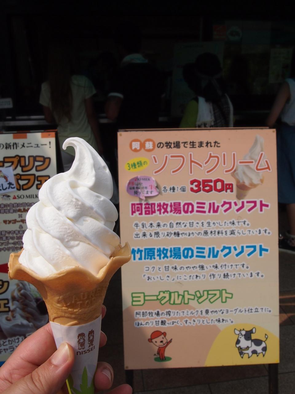 軽食で言うと、牧場のミルクソフトを食べられます。 2種類の牧場のソフトクリームがあり、牧場の名前でオーダーするようでなかなか面白かったです。