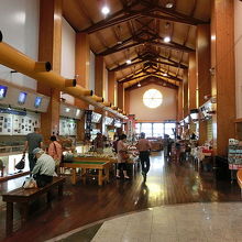 休憩スペースは無料でお茶もセルフサービスであります。また館内のレストランも人気があるようです。