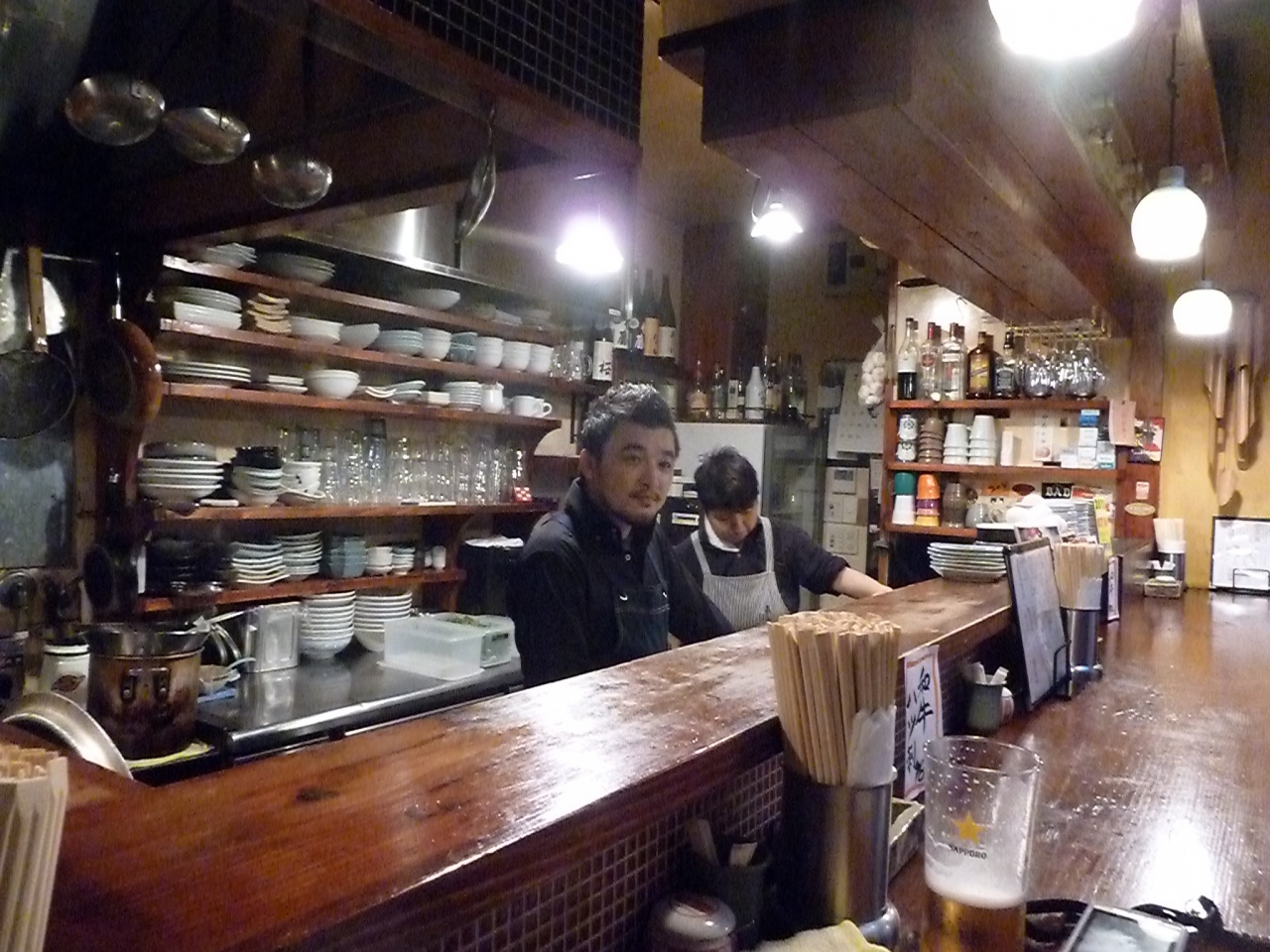 おみせの中の雰囲気もレトロで良いし、1階はカウンターのみ、