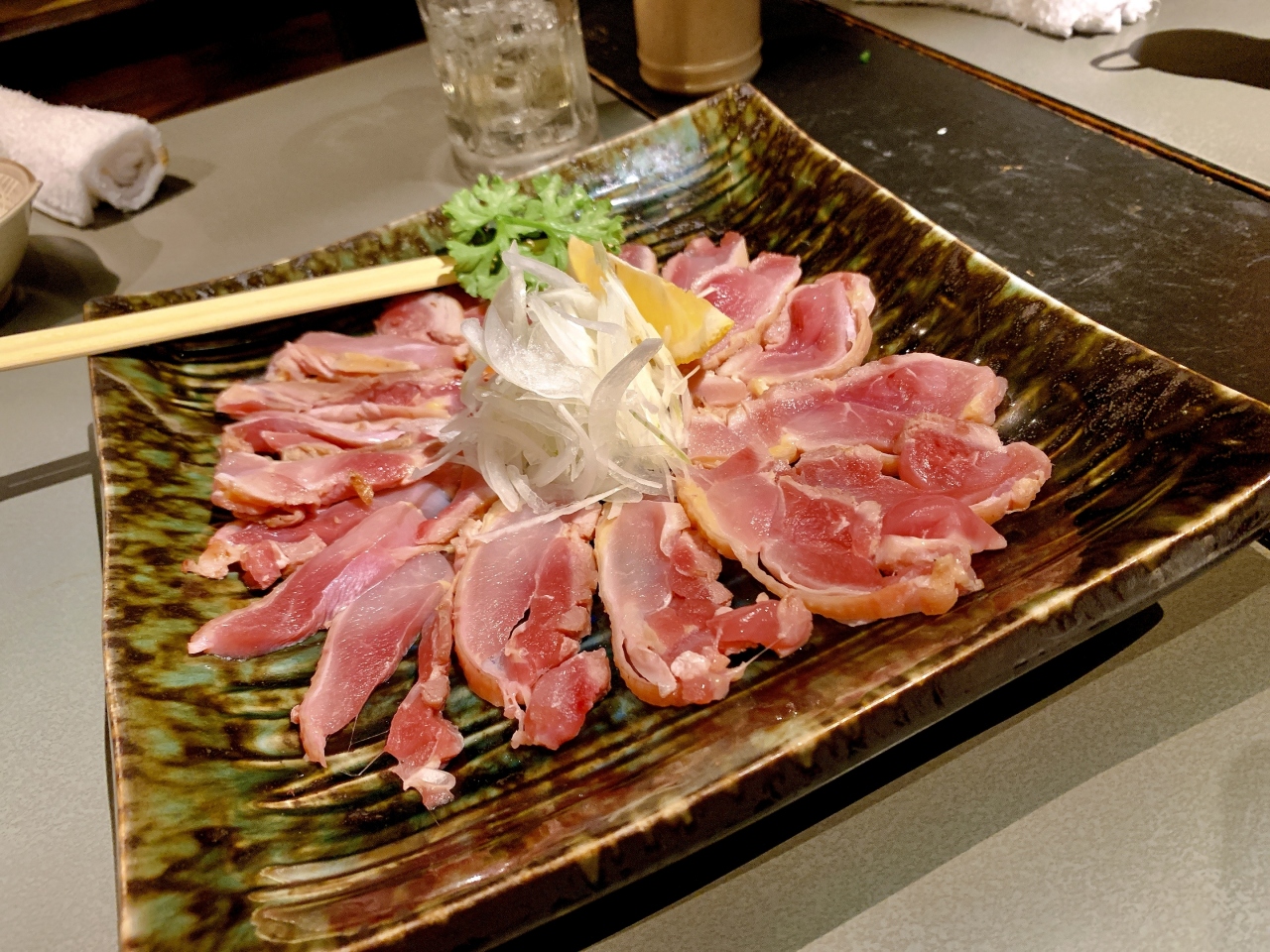 「地鶏登板焼き」は登板で地鶏を好みの焼き加減にします!焼きすぎると固くなるのでそれなりに。