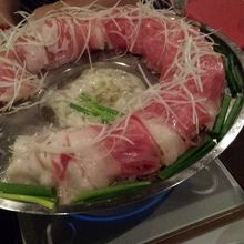肉の下には葱があり鍋中心のテールスープに落とし込みながら炊き上げて食すという斬新なタイプ!